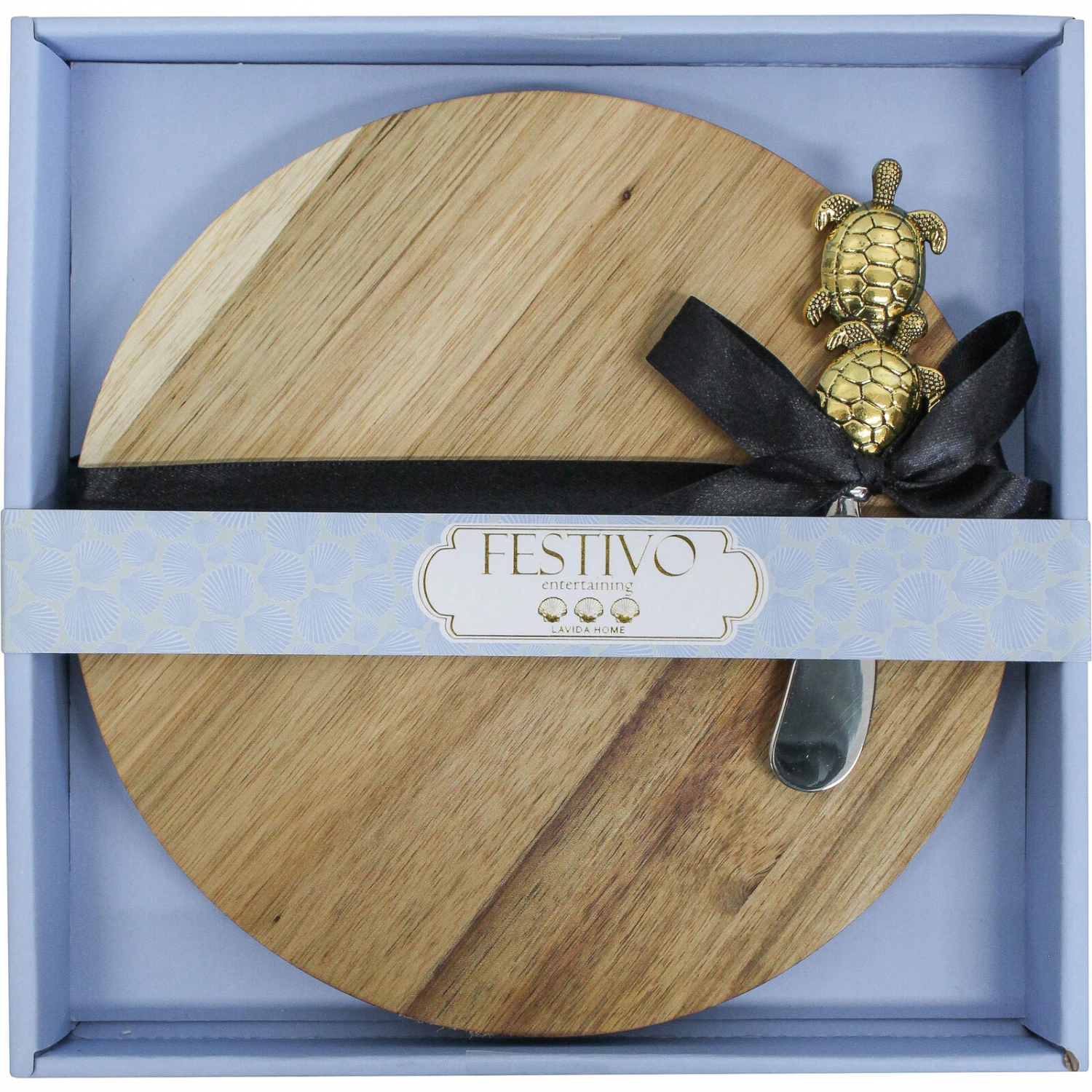 Elevate your entertaining essentials with the Acacia Round Board/Turtle Spreader Set, a charming duo that combines functionality with a touch of whimsy. Crafted from durable acacia wood with dimensions of 22.5×22.5×3.3cm, this set is complemented by a delightful turtle-shaped metal spreader, making it an attractive addition for any retailer aiming to offer unique, high-quality serving options that captivate shoppers and enhance table settings.