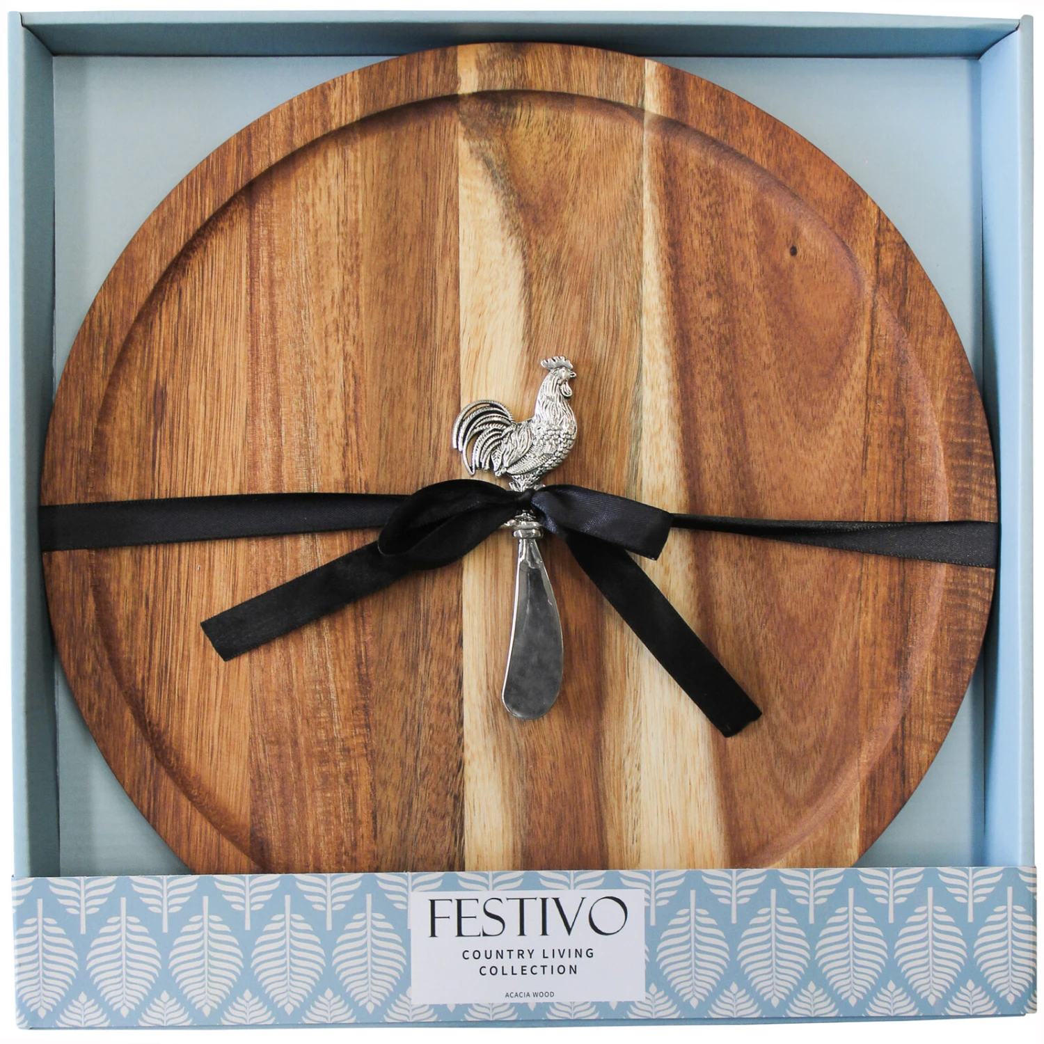 Featuring shallow depth and slightly raised edges, Acacia Tray Rd /Rooster Spreader is portable for serving desserts and sliced fruits to guests. Use this tray on a nightstand to hold desserts and snacks for late-night snacking. Acacia is a natural beauty with refined grains, texture, and natural allure. Its properties range from strength and toughness to hardness. Plus it promotes an eco-friendly lifestyle.