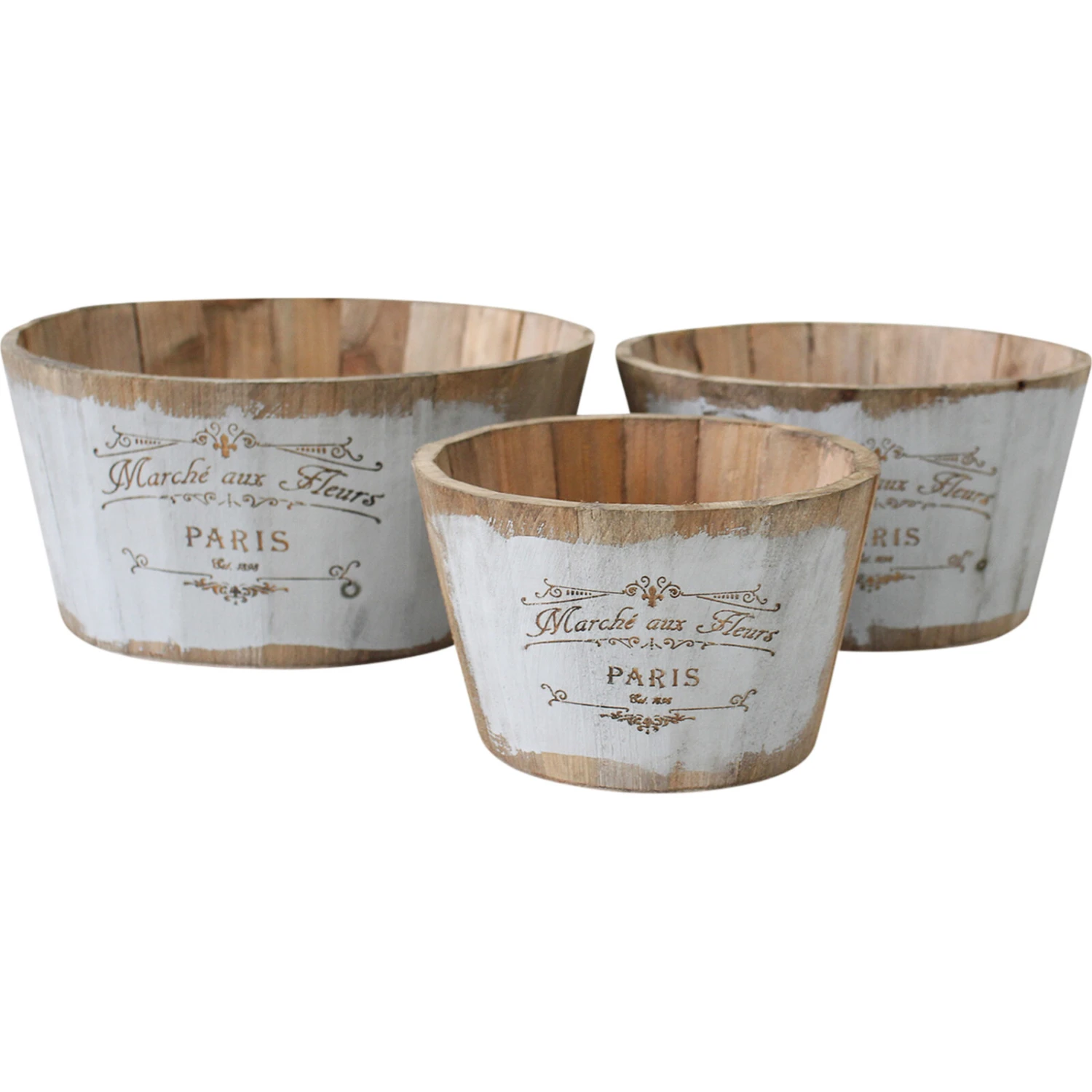 The Barrel Planters S/3 Markets is a set of three unconventionally stylish planters all of which are made using the same material component and in the same shape and design but differ from one another in size. Though not recommended for use in growing organic plants, all three however can be used to display whatever specie and kind of artificial plants of their choice. Plus, it may also be used for other purposes other than as a planter.