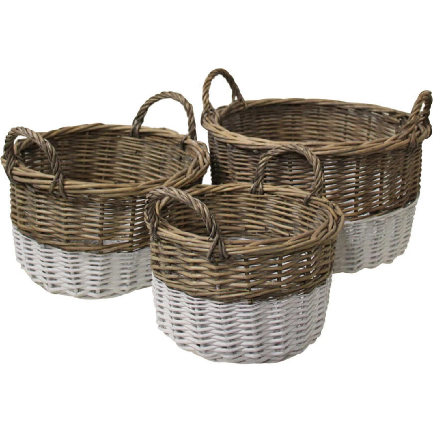 Our attractive woven baskets are rustic with a refined finish. Featuring a natural hue with a white hue that accents the lower end. These baskets have a simplistic appeal that looks nice without being distracting.