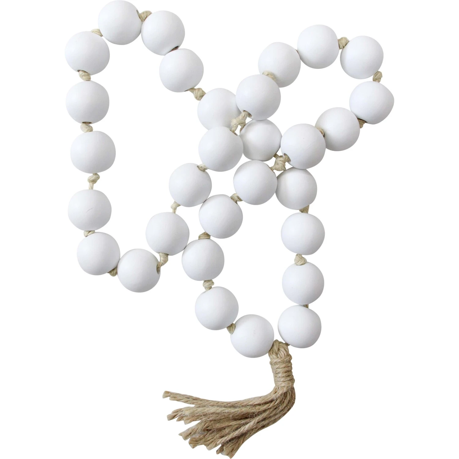 Crafted with care, the Bead Jumbo Tassel White adds a touch of elegance and simplicity to any home decor. Measuring 7x3x62 cm, this beautifully designed piece features large, smooth white wooden beads strung together with a natural jute rope, ending in a cohesive tassel that completes the look. Retailers will find that its serene colour palette and organic materials resonate with customers looking for a blend of traditional charm and modern aesthetics.