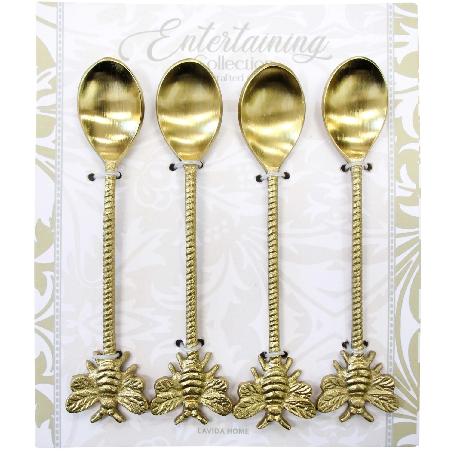 Embrace the charm and elegance of the Bee Spoons Set of 4, a delightful addition to any table setting that combines functionality with a touch of nature-inspired design. Crafted from durable stainless steel and brass, each spoon measures 14x3x1cm and features a whimsical bee motif handle that adds a pop of sophistication to your dining experience. These exquisite spoons, with their radiant blend of colours, are not just utensils but conversation pieces that will captivate customers and enhance the appeal of your home decor collection.