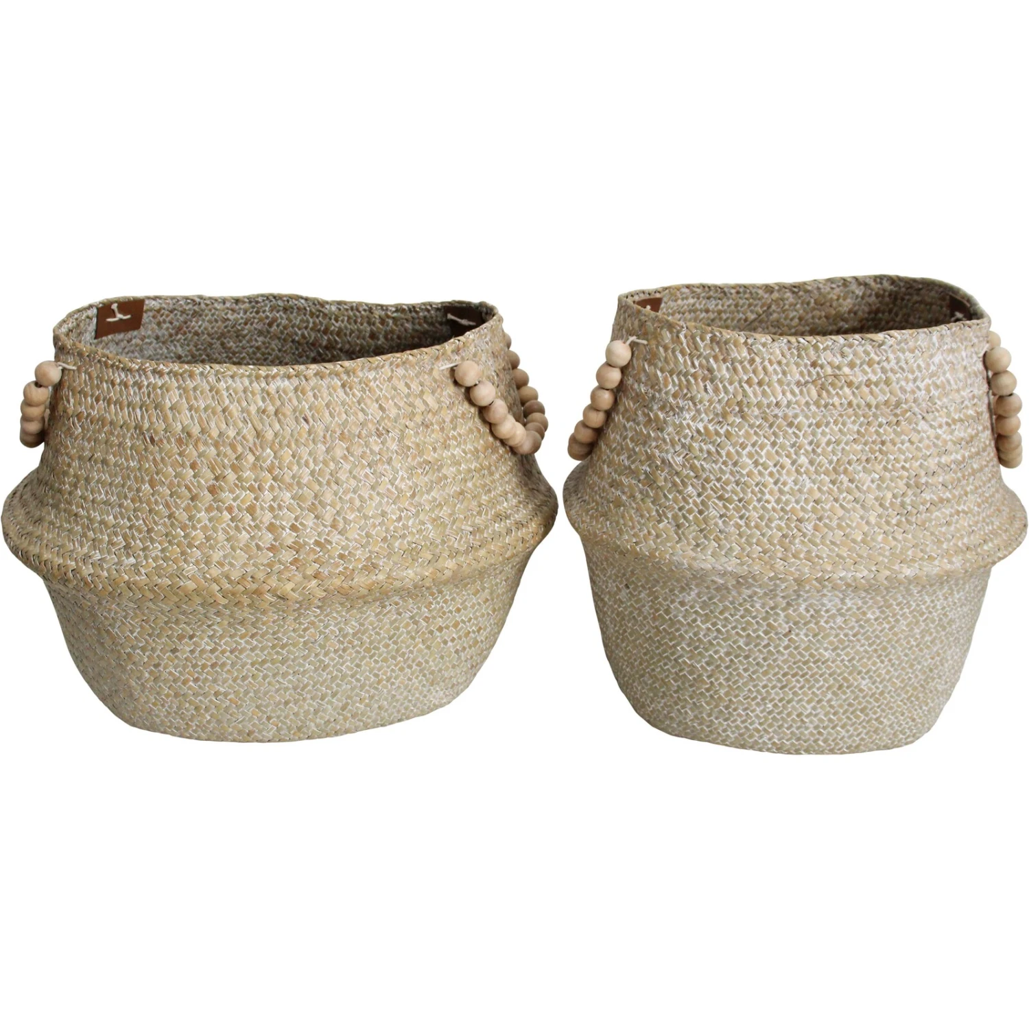 A fresh take on the rustic charm with a charming appearance. Our belly baskets are accentuated with beads for an updated modern style. Designed to serve all household storage needs. These straw baskets most unique feature is their versatility.