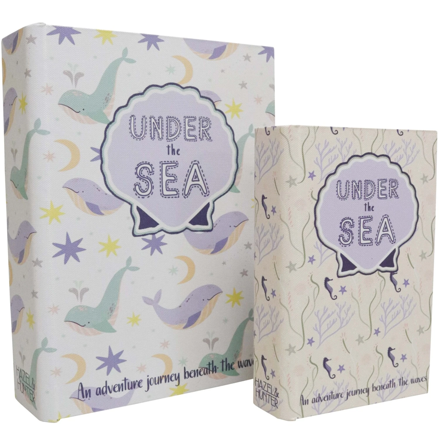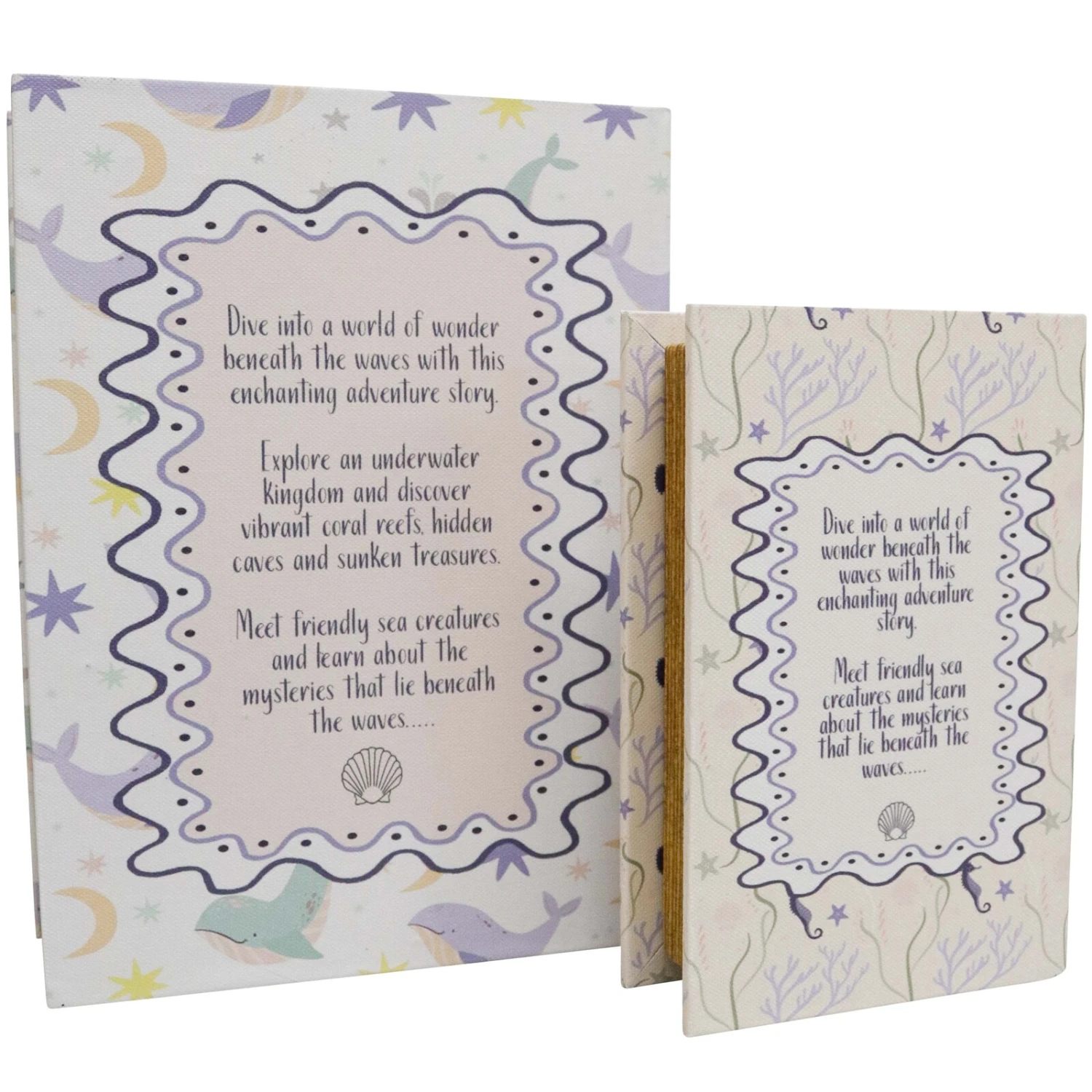 Dive into a world of enchantment with the Book Box Set “Under The Sea,” a charming duo of storage options that blend utility with oceanic whimsy. Crafted from MDF, wrapped in canvas with non-woven fabric, and accented with PVC for durability, these boxes come in two sizes (Medium: 24x18x6 cm, Small: 18x12x4 cm) and feature a delightful aquatic design that will captivate any marine enthusiast. Retailers will find that these book boxes not only serve as stylish organizational tools but also as irresistible decorative pieces that are sure to lure in customers looking for a blend of function and fantasy in their decor.
