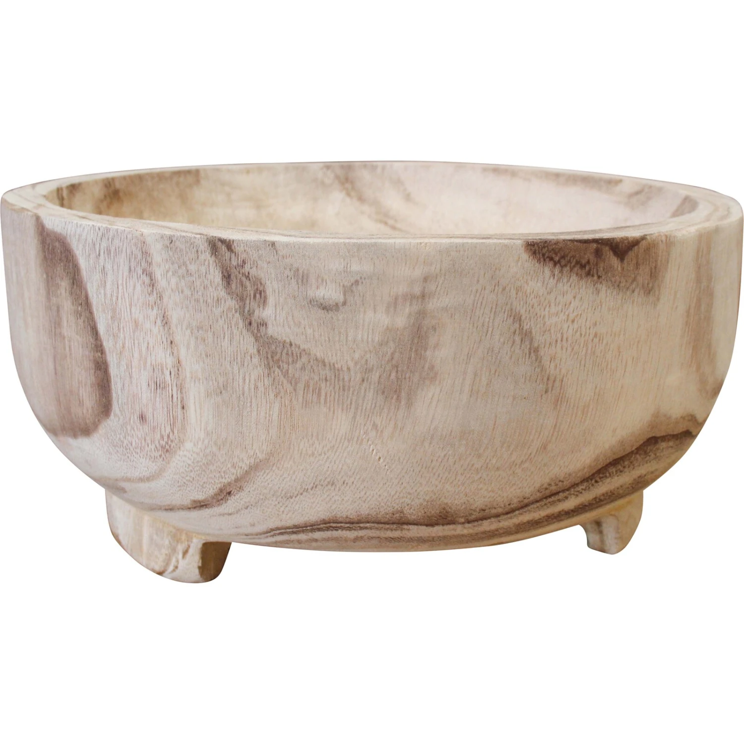 The touches of earthiness that wood brings to your décor makes it a fine element to include if you like things organic and connected with nature. This light coloured wooden bowl has been fabricated from paulownia wood that has been expertly shaped by hand, and carried the age and the gains beautifully through its fibers and knots. A wonderful means to add earthiness and minimalism to your spaces using eclectic and handcrafted articles that are unique in essence.