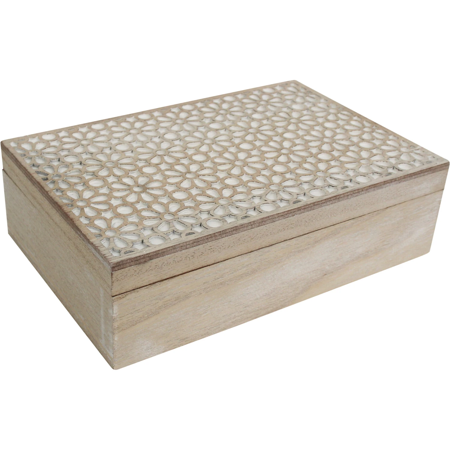 The Box Daisy Rect is made in a long, rectangular shaped size which measures 24 centimetres in length alone, 16 centimetres in its width and 7 centimetres in height. It is crafted with a tight shutting lid which ensures that prying eyes cannot see whatever prized possessions are kept inside. As such, it is suitable for use in keeping or displaying precious jewelleries, keepsakes, trinkets and whatever other memorabilia.