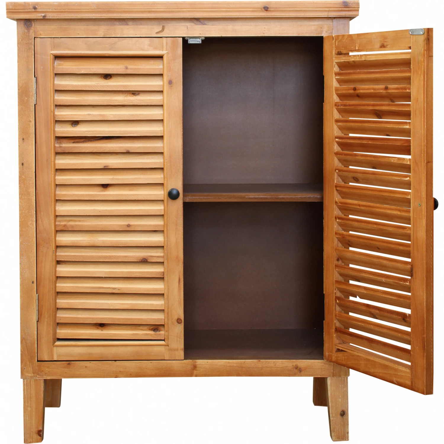 This two-door cabinet is the kind that will fit int any space with ease and help make it more useful owing to its storage space and the top which functions like any other table top. A great means to fill up those wall spaces that need to be useful and yet not be too large or cumbersome to be sued around. Made from fine quality timber wood this piece is a simple cottage style design that will blend into almost any space.