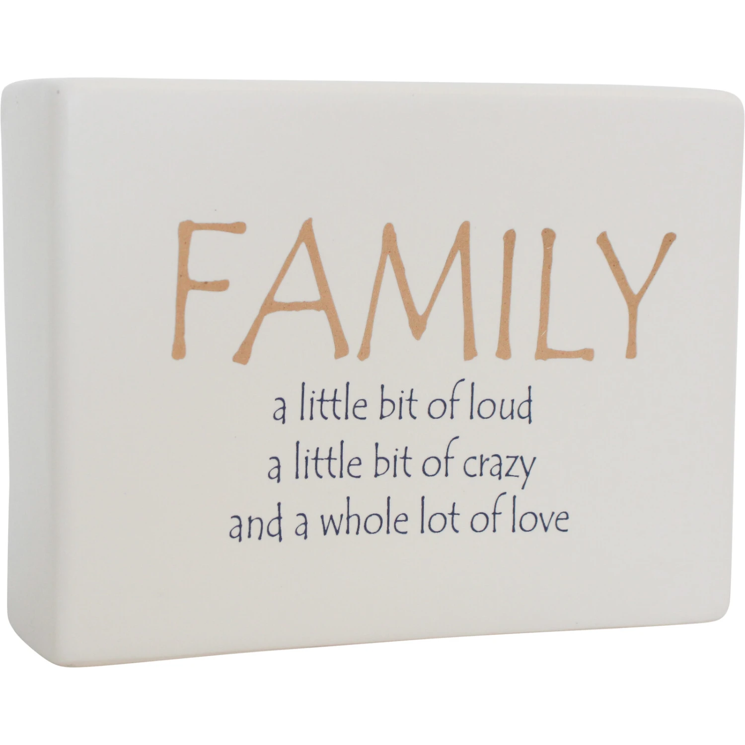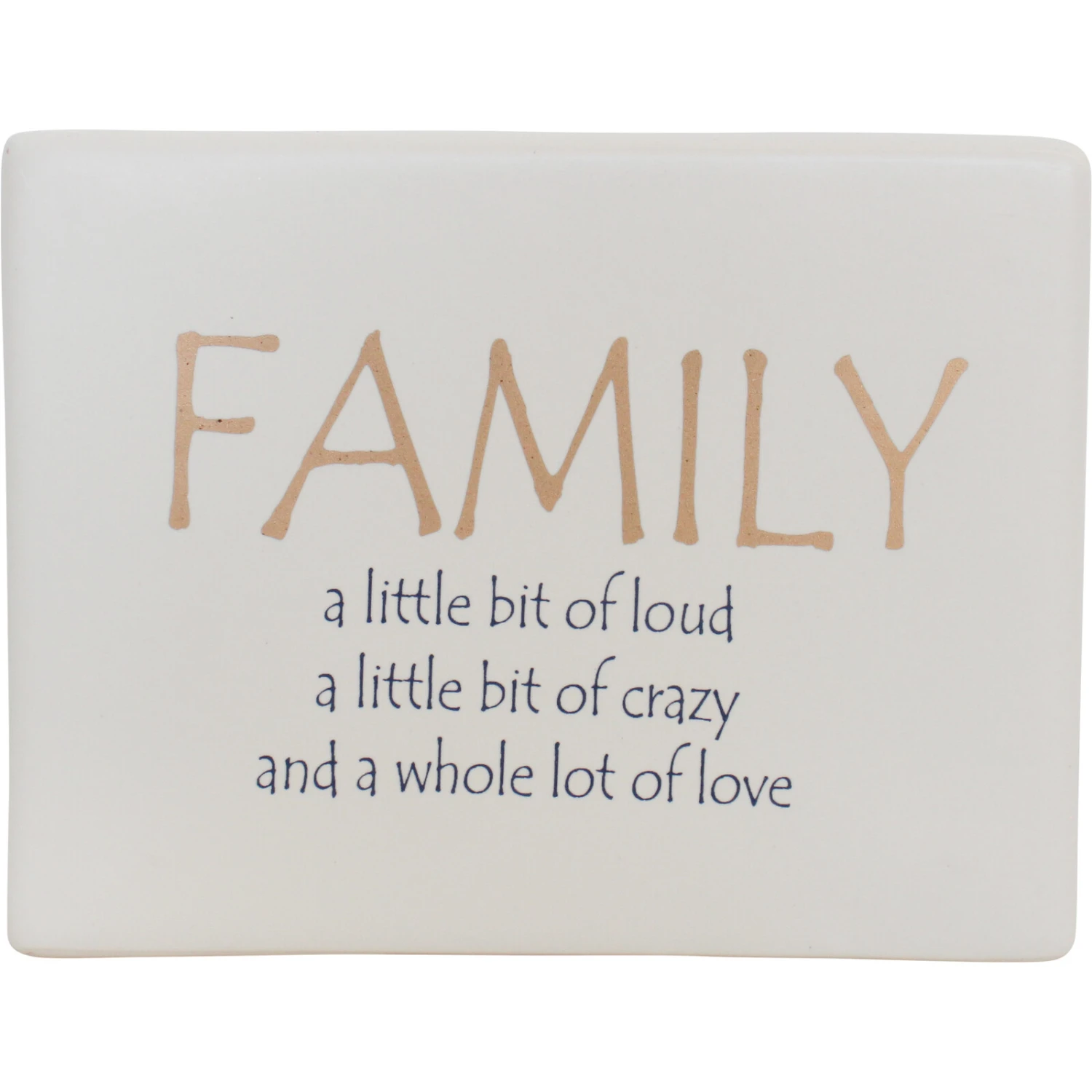 Embrace the charm of home decor with the Ceramic Sign Family A Bit, measuring a cozy 13x4x10 cm. Crafted from high-quality ceramic with a serene colour palette, this heartwarming piece captures the essence of family life, reminding us that it’s “a little bit of loud, a little bit of crazy and a whole lot of love.” Perfect for gift shops and home decor retailers, this item is sure to resonate with customers looking to add a touch of warmth and personality to their living spaces.