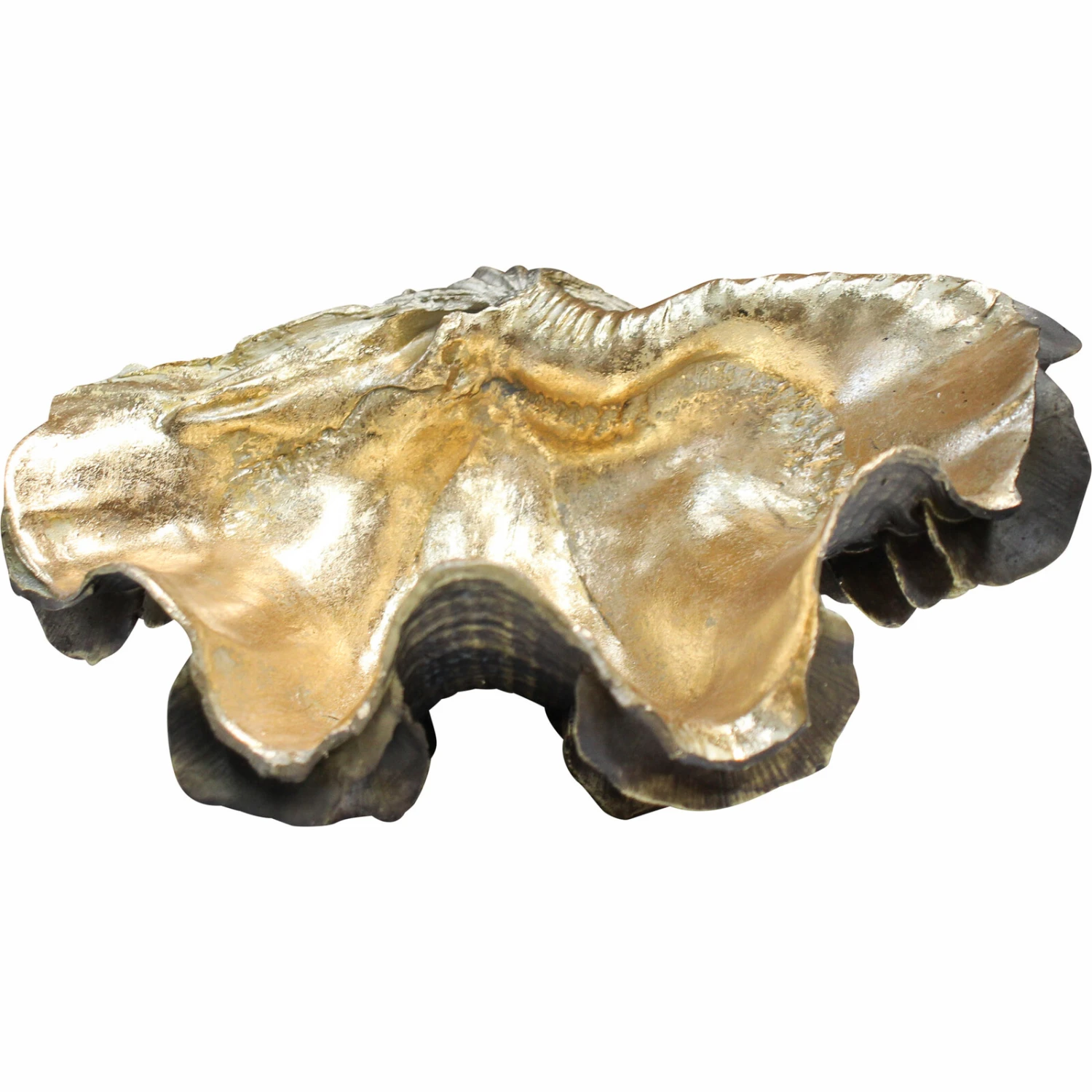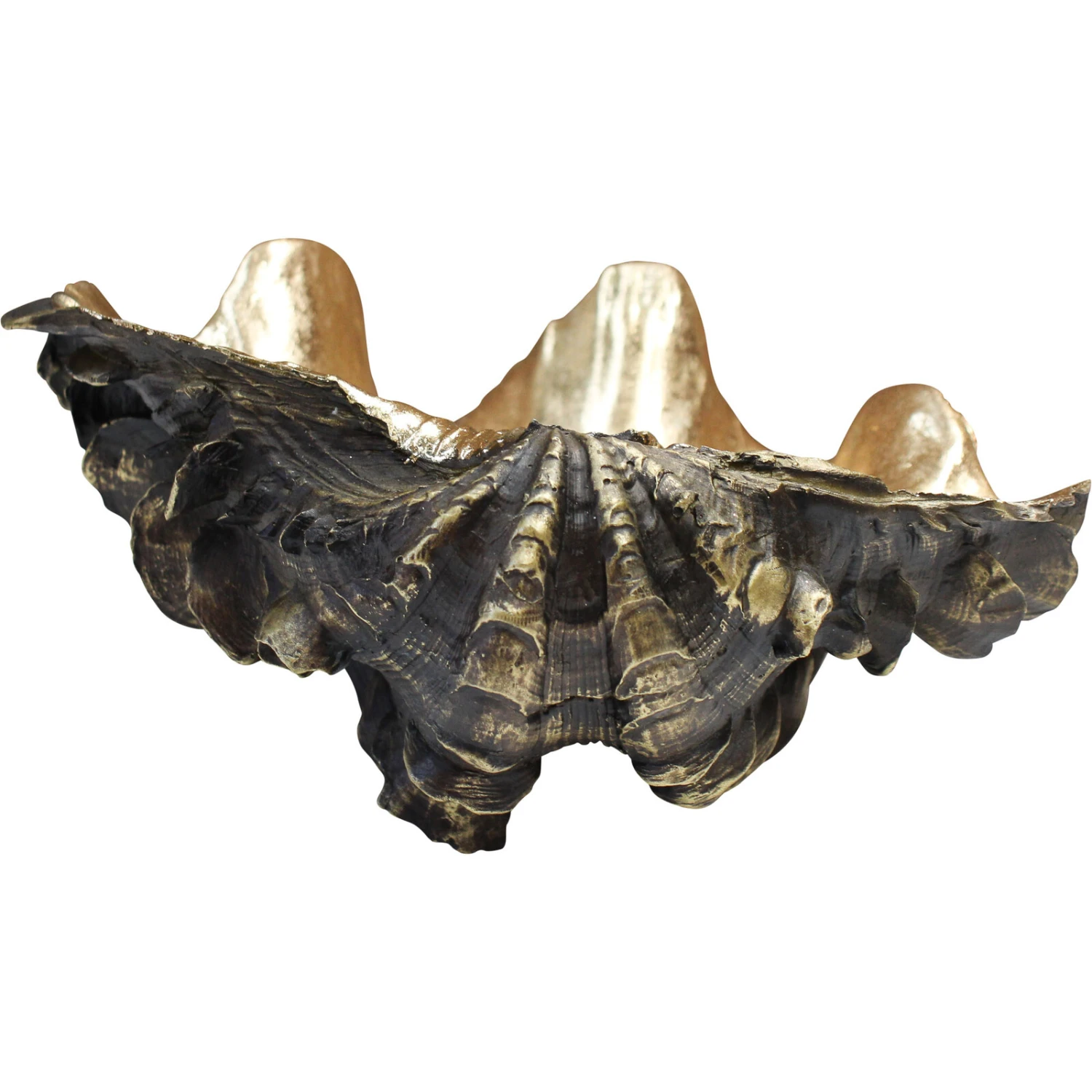 The Clam Shell Bahama is a beautifully crafted piece of art that showcases the intricate detailing and patterns of a clamshell. It is created with care by skilled artisans using resin and a gold-plated finish, which adds a touch of opulence to the overall design.