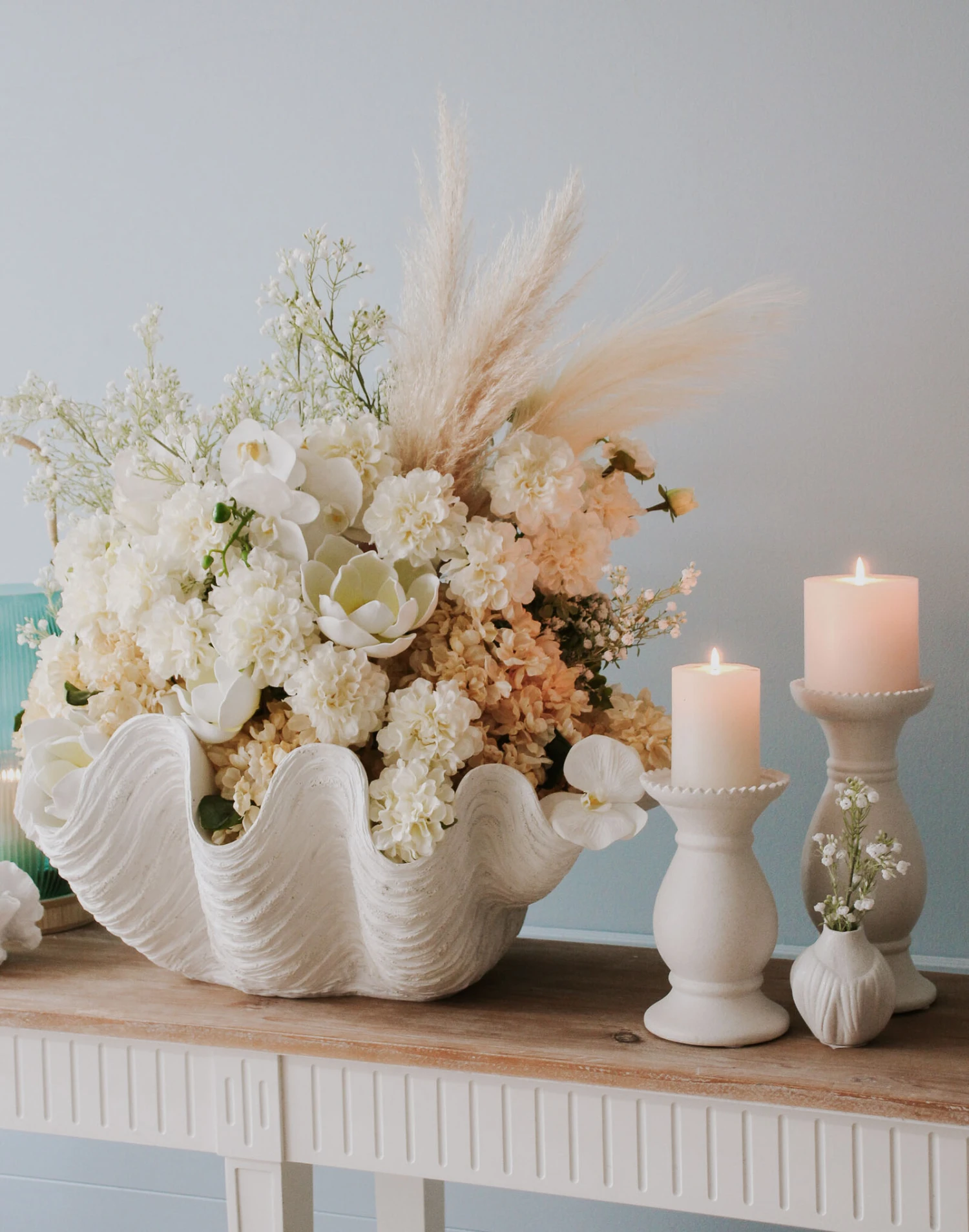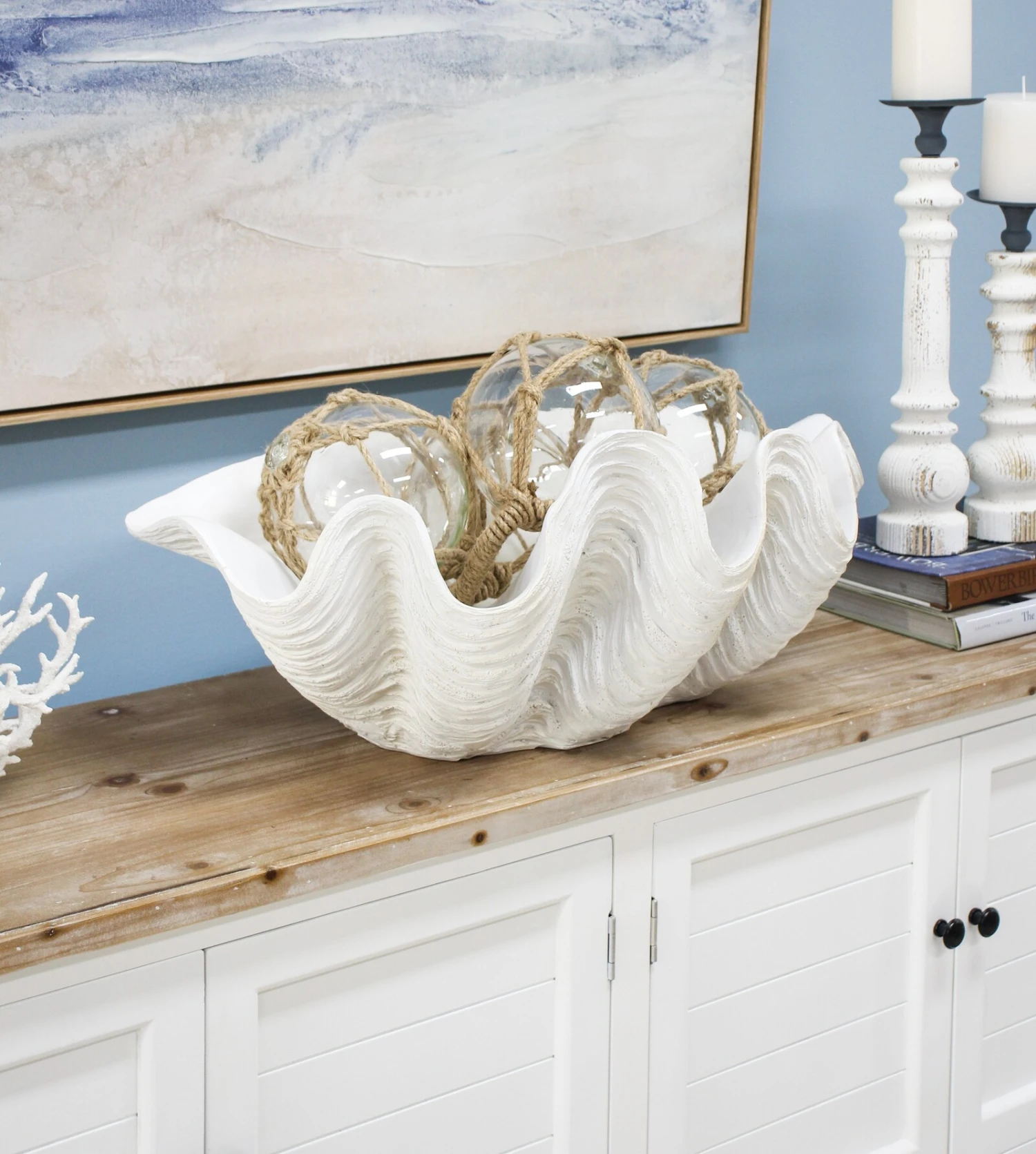 Clam Shell Giant White is a work of art exclusively made with an organic compound, Resin. Resin is a prized material that makes it corrosion and impact resistant. This piece is the ultimate beach abode and would add that seaside charm to any interior. This item is a necessity on every vanity chest. It would make a design statement on a coffee table or mantle.