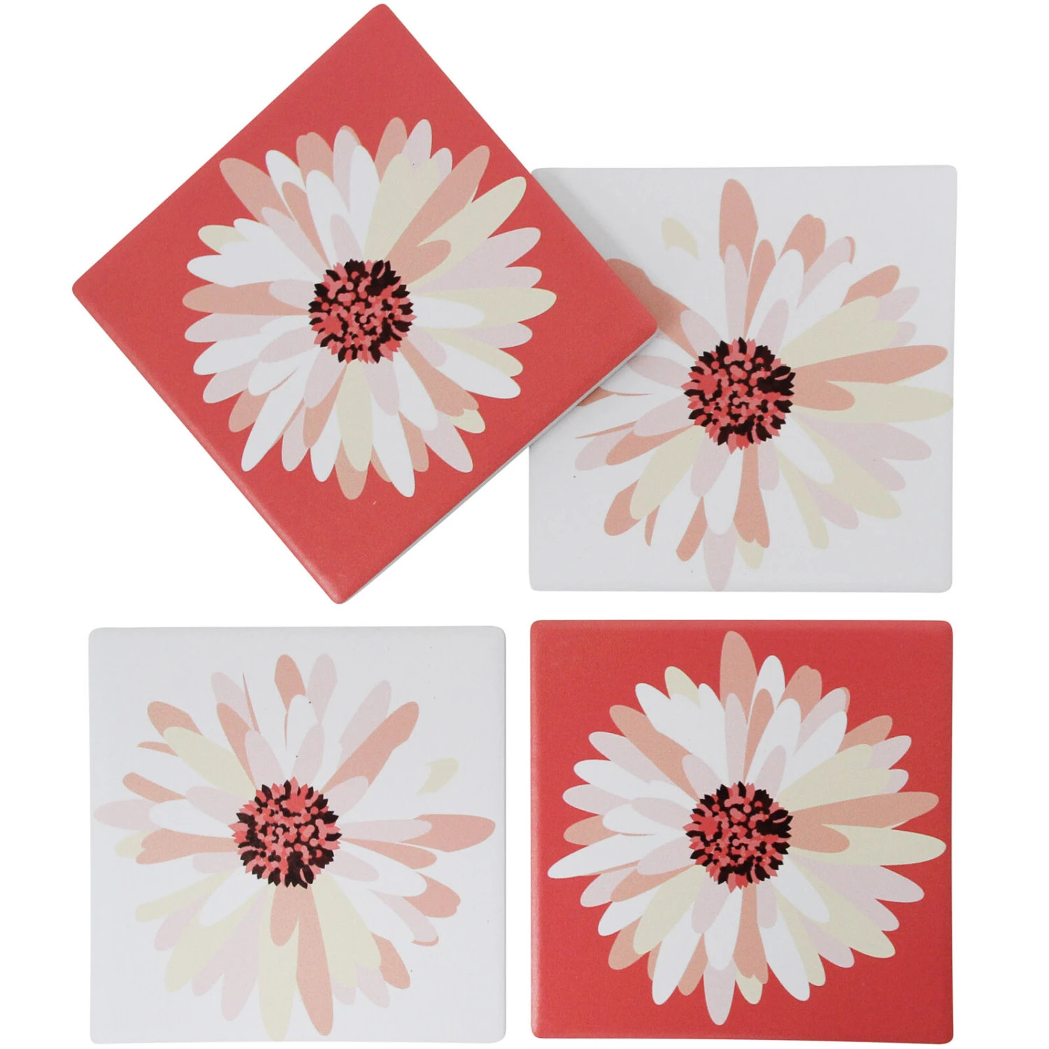 The Coaster Folk S/4 presents four alluring and aesthetically hand crafted coasters all of which are crafted in the same shape, using the same premium quality porcelain material and in the same decorative motif. However, the choice of colour and pattern of the similarly glazed floral motif differs as all our coasters can be categorised into two groups showcasing the same floral motif. The first and fourth coasters are brightly coloured than the second and third.