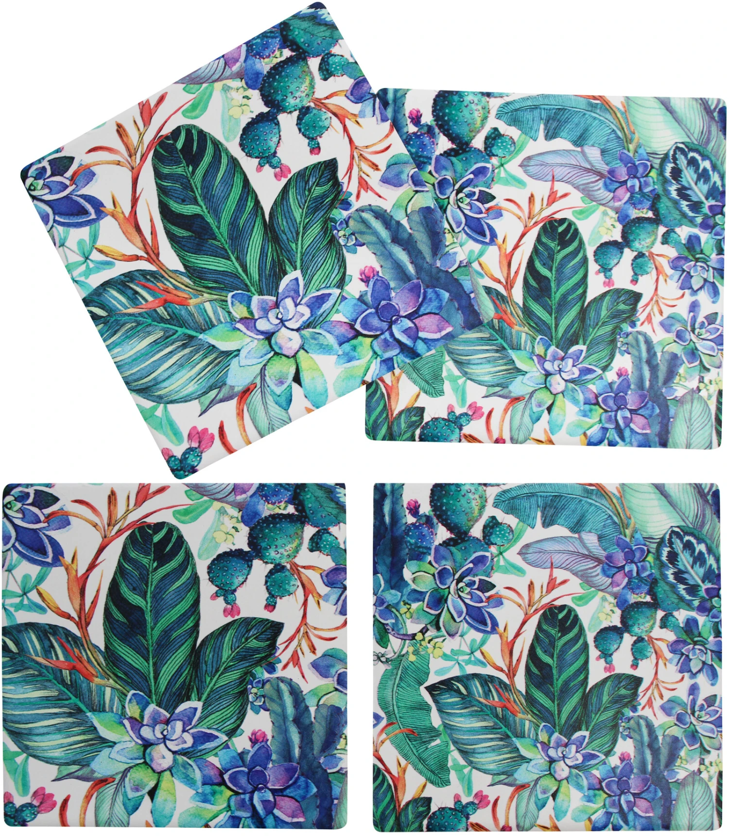 Colourful and inviting, the Coaster Tropics S/4 is enough to create a thirst for drinks in the user given the grand appealing decorative statement it makes. This coaster is sold as a set which contains four coasters made using top quality porcelain material in the same square shaped dimension and ornamented with the same depictions of an extravagantly colourful tropical rainforest. This makes it just as ornamental as it is obviously practical.