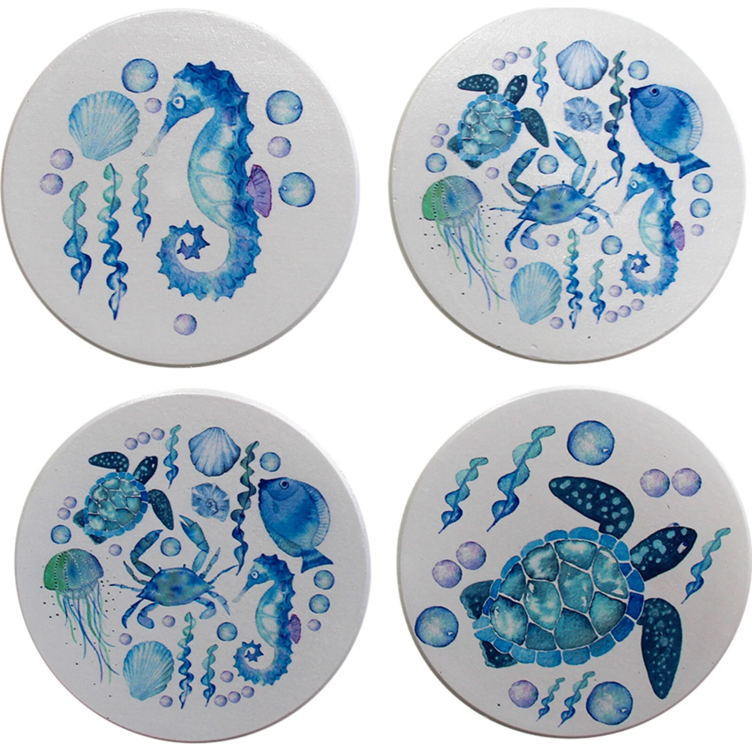 Beautiful set of four round coasters with a lovely sea life print for all marine enthusiasts