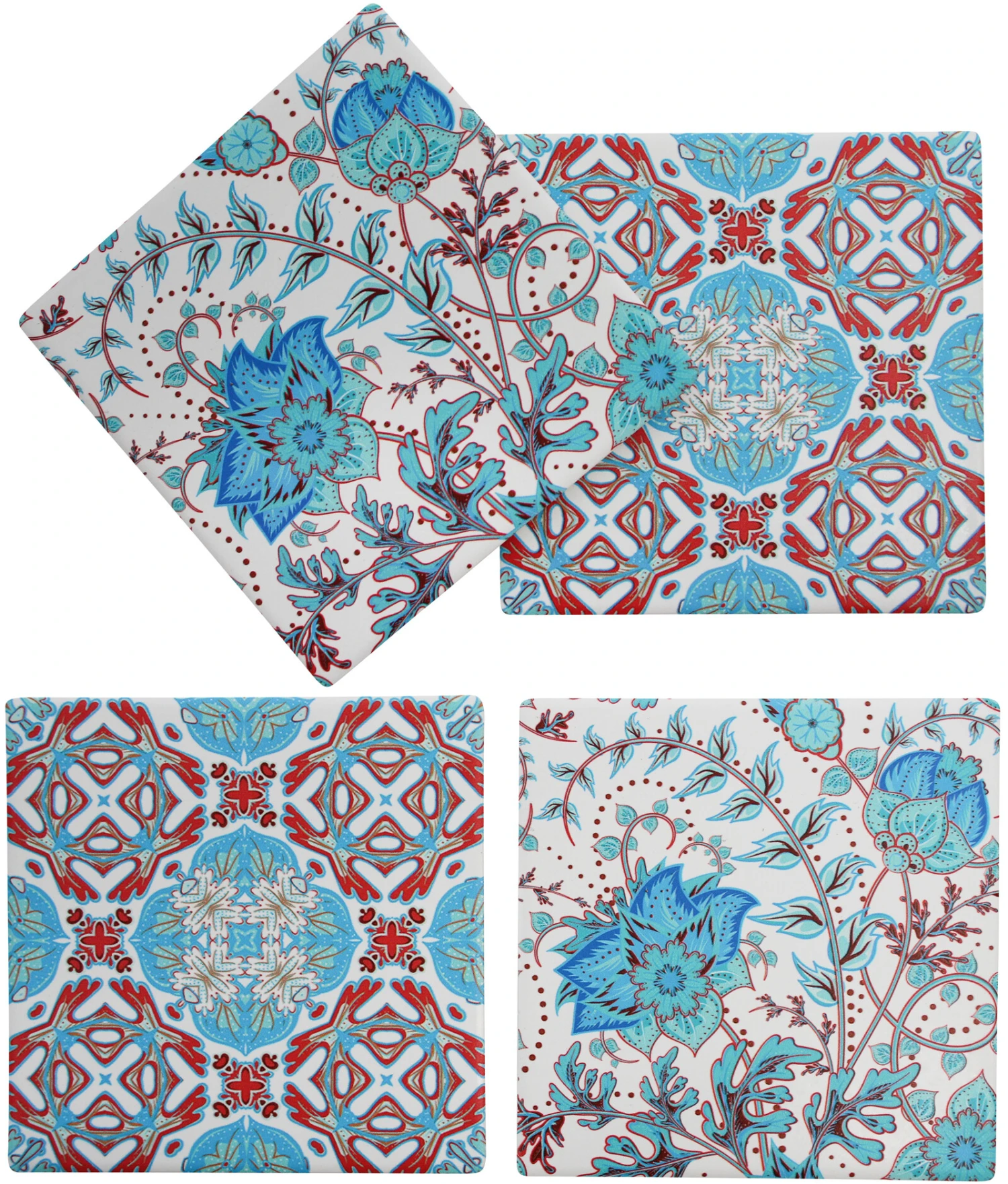 Coasters serve an important purpose: they are meant to prevent our table tops from being dented, stained, or damaged by condensation from hot or cold drinks. However, this is not all what makes a coaster appealing. They have also become popular ornamental items. This is the very reason why this Coasters Mix Vintage S/4 sports an elaborately glazed vintage colourful motif. Each of the four coasters sold in this set is made using premium quality porcelain material.