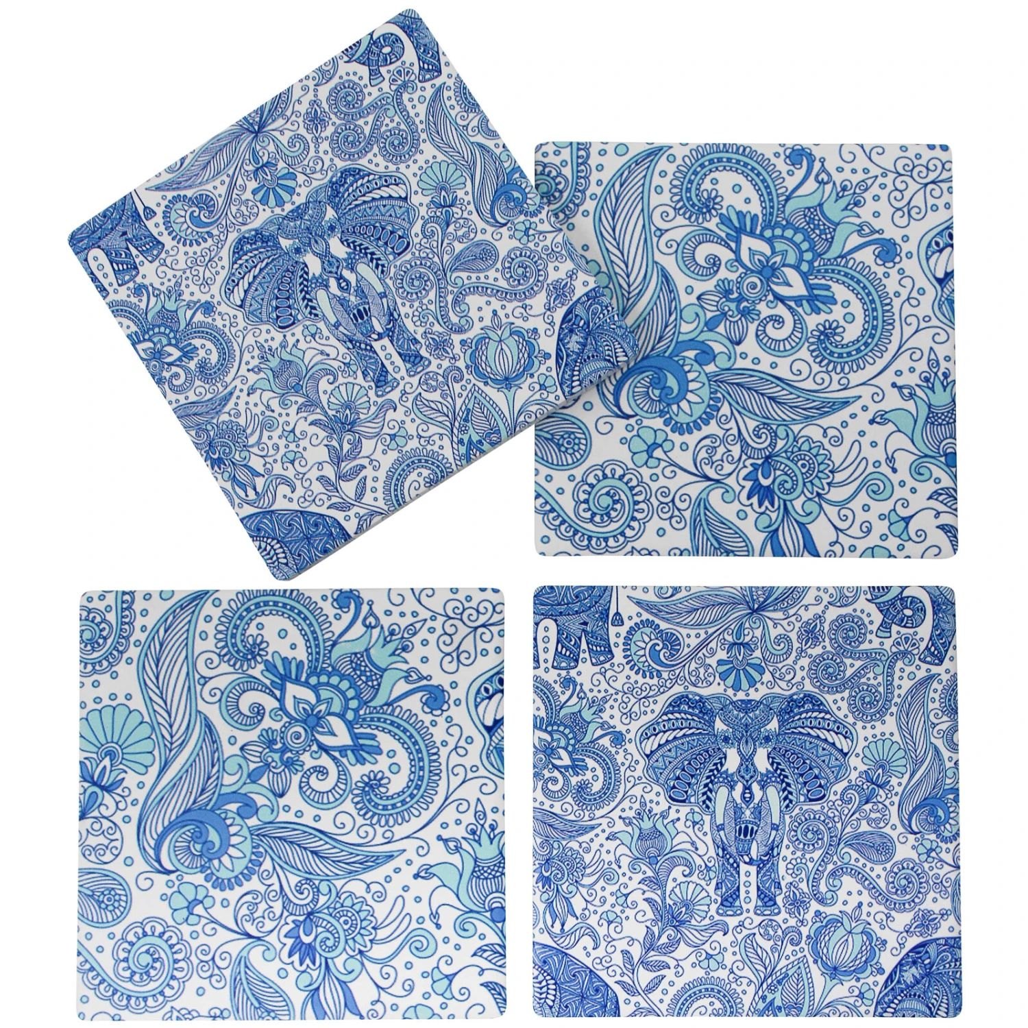 The Coasters Mythical Elephant S/4 is a lovely set of four porcelain handcrafted coasters. Each of these coasters possesses an enduring visual appeal that will appeal to almost all of your customers as they are glazed with the charming motif of the largest terrestrial mammal on earth – the elephant! The mystical looking elephant is rendered in a cool shade of blue hue over a pristine, cool white background.
