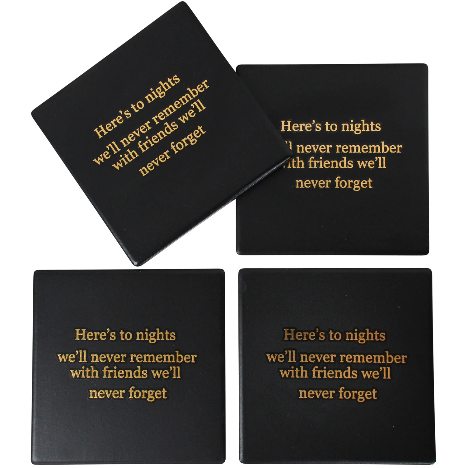 The Coasters Nights to Remember S/4 is just the perfect item that any of your customers, including you, could give to just about anybody whose impact and friendship they recognise and appreciate! This is because this set of coasters; which consists of four similarly shaped and designed coasters, all have an affectionate complimentary statement glazed unto their surfaces with the aim of appreciating friends and loved ones.