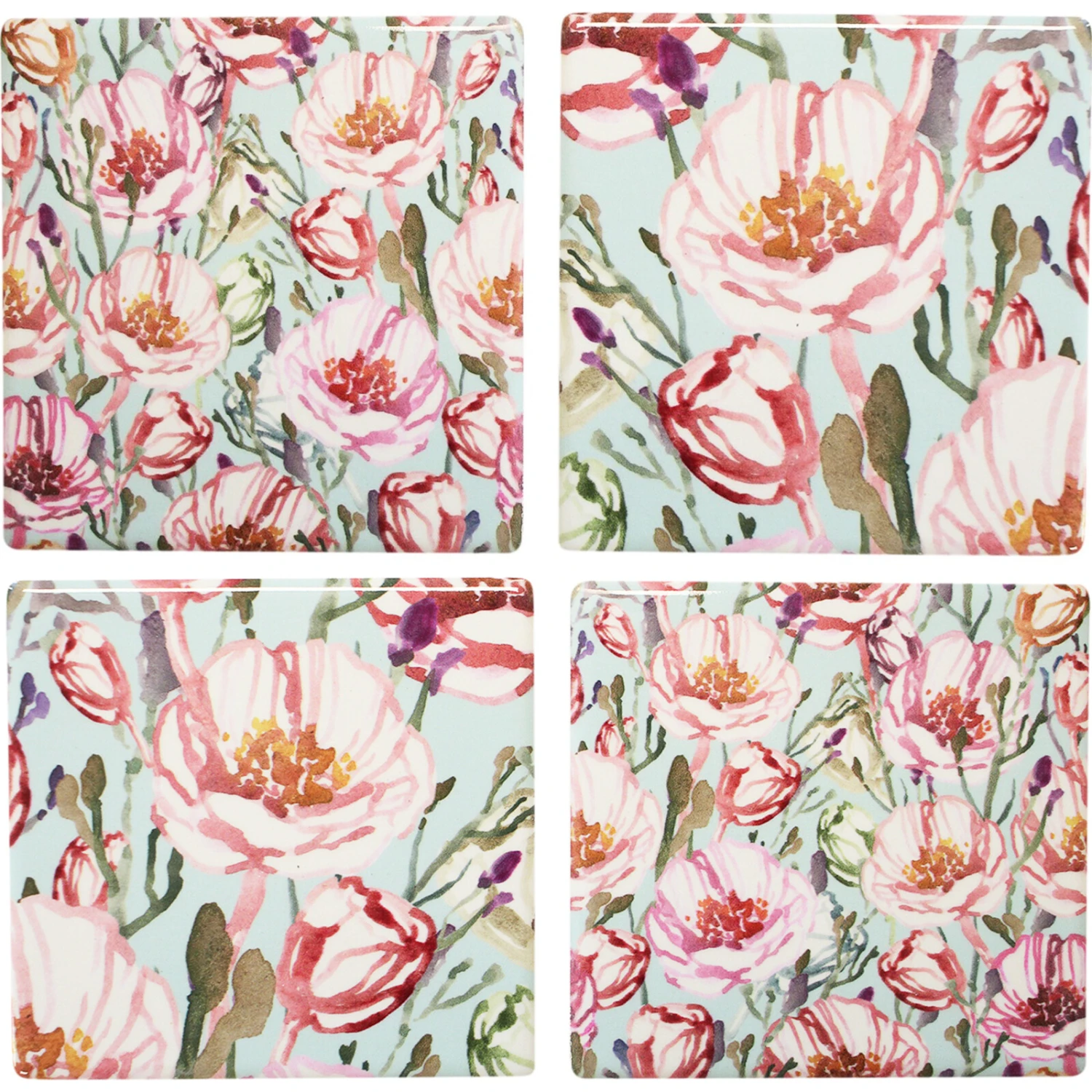 Summer is that favourite time of the year in which the weather is lovely and perfect for a holiday. At this time, most flowers are in blossom and everywhere looks grand and beautiful. It is this same scenic view that this set of Coasters Summer Flowers captures beautifully. In the set are four coasters in which two have a similar patterned design while the other two also share sameness of floral pattern.