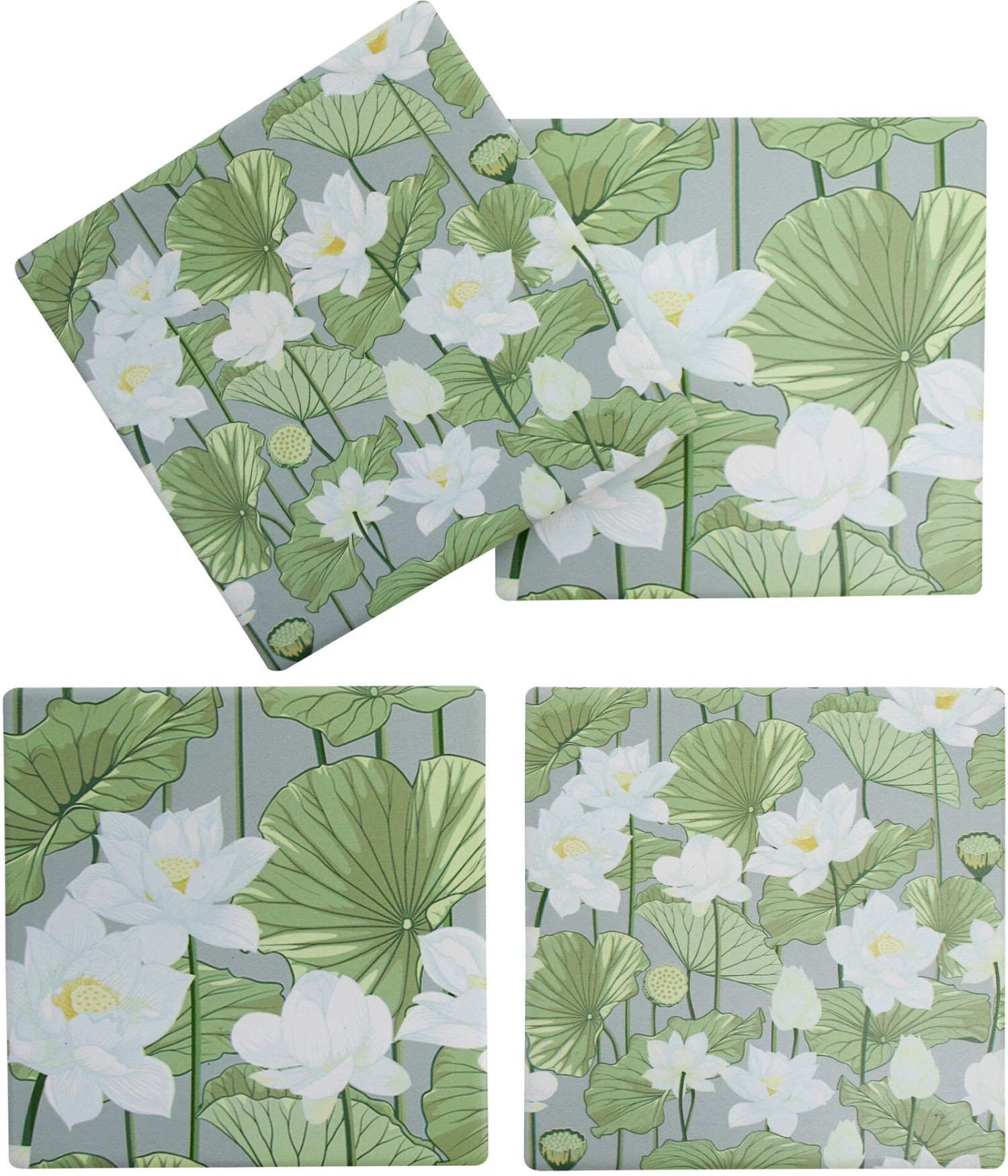 What more could be more appealing than having the base of your drink beautifully ornamented with colourful lily floral motif while also helping to protect the surface of tables from scratches and stains? This is the reason you really should consider stocking up on several cartons of this Coasters Water Lily S/4 while it is still in stock. It is sold as a set consisting of four square shaped porcelain coasters.
