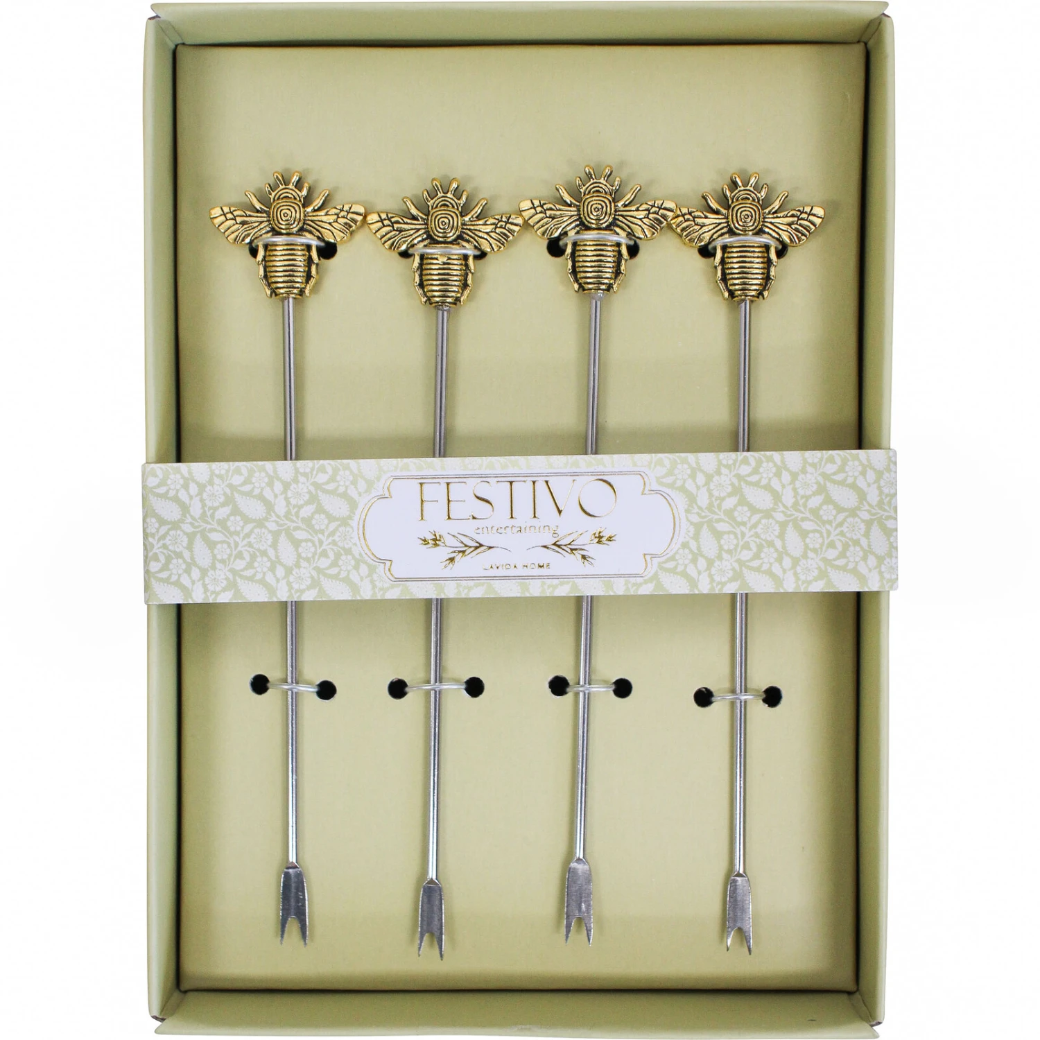 Elevate your cocktail presentation with this set of four “Cocktail Pick S/4 Bee,” meticulously crafted from metal’ for durability and elegance. Measuring 14.5X10.5X2.5CM, these picks boast detailed bee ornaments on top, adding a touch of whimsy and sophistication to any beverage. A perfect blend of style and functionality, these cocktail picks are a charming addition that can allure customers looking to enhance their home entertaining accessories.