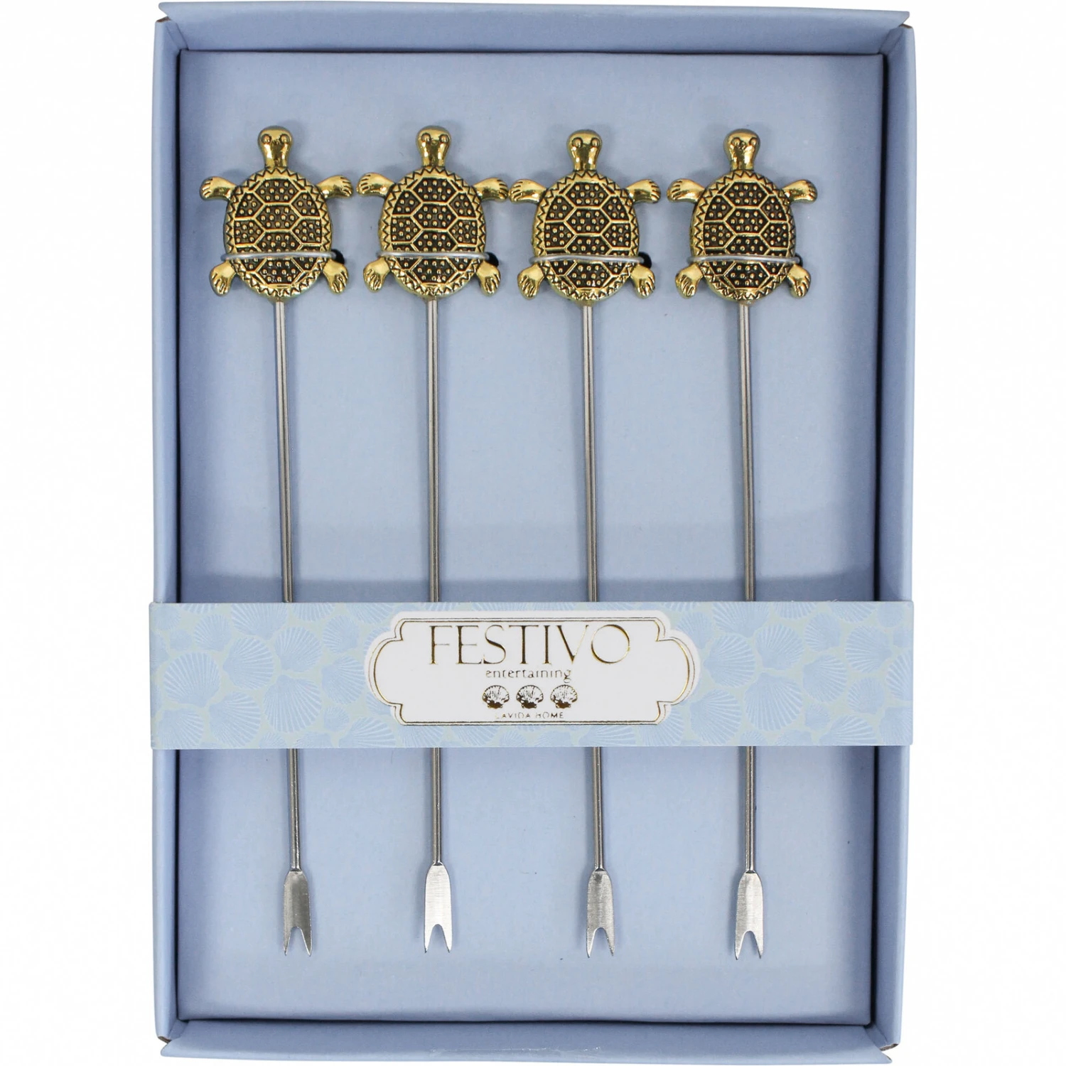 Elevate your hosting game with the Cocktail Pick S/4 Turtle set, a charming addition to any party’s appetizers or cocktails. These metal picks, adorned with exquisite turtle-shaped handles, measure 14.5X10.5X2.5CM, making them both functional and decorative. Retailers will find that these eye-catching accessories effortlessly combine utility with style, promising to captivate customers and enhance their entertainment experience.