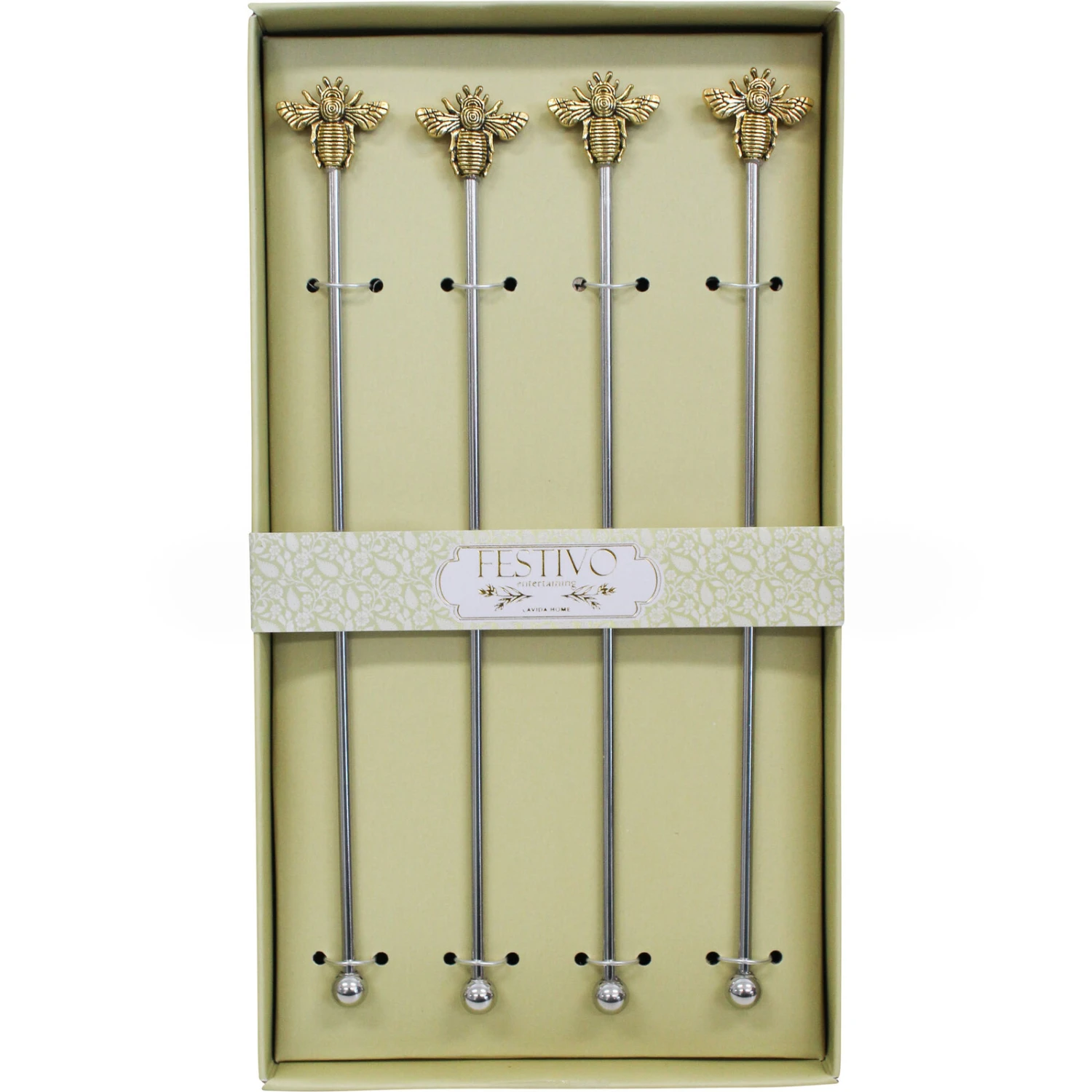 Elevate your barware collection with the Cocktail Stirrer Bee Set of 4, where elegance meets functionality. These 22X12X2.5CM metal stirrers, each topped with an intricately designed bee, add a touch of sophistication to any cocktail experience. Ideal for any retailer looking to offer customers a combination of style and practicality, this set is sure to be a conversation starter at gatherings and a delightful upsell for those seeking to enhance their entertaining tools.