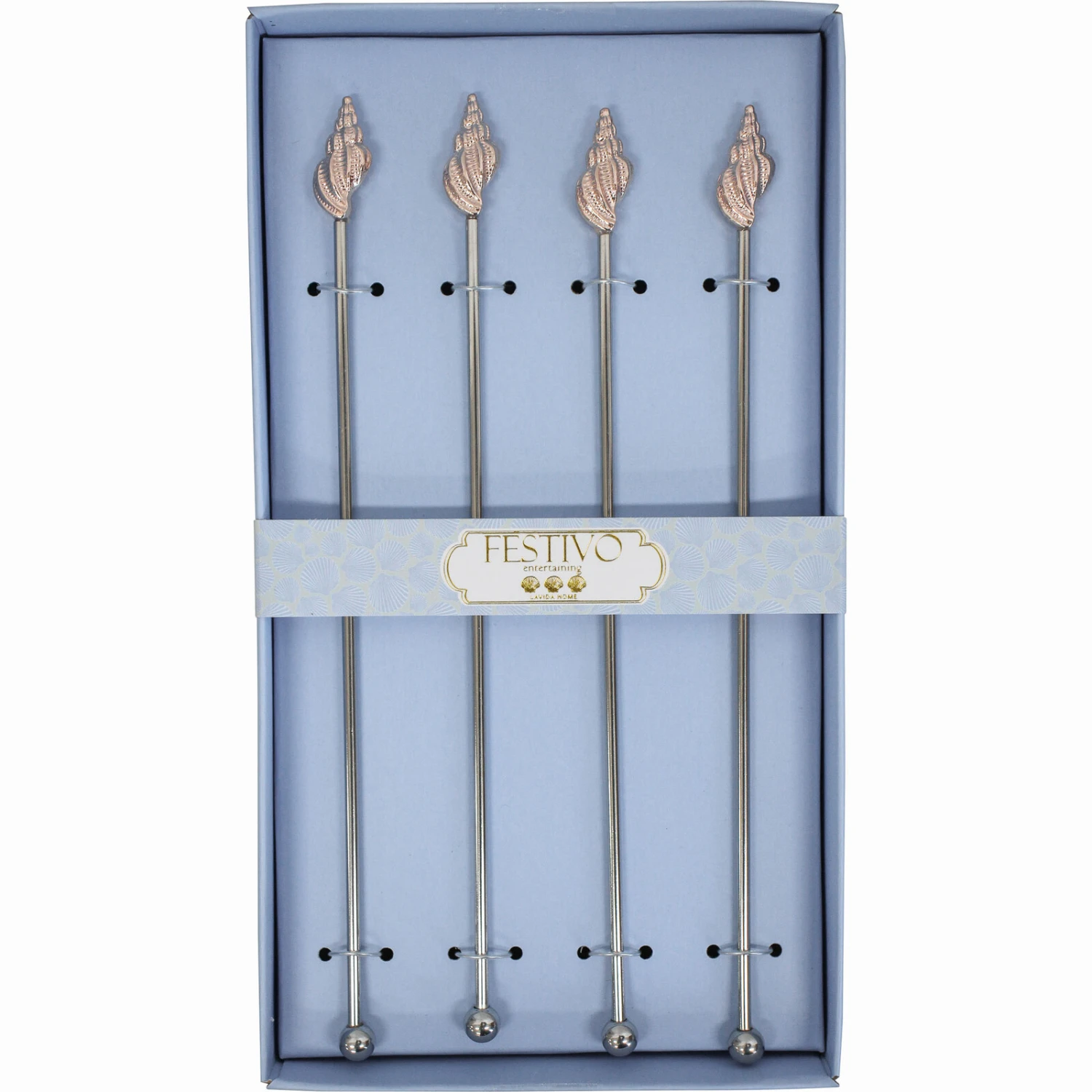 Elevate your cocktail service with the exquisite Cocktail Stirrer Shell Set of 4. Crafted from lustrous metal, these stirrers span 22x12x2.5 cm and feature an elegant shell design that adds a touch of sophistication to any beverage. Perfect for upscale bars, restaurants, or home entertaining, these stirrers are sure to impress guests and enhance the overall drinking experience, making them a must-have addition to any venue’s accessories collection.