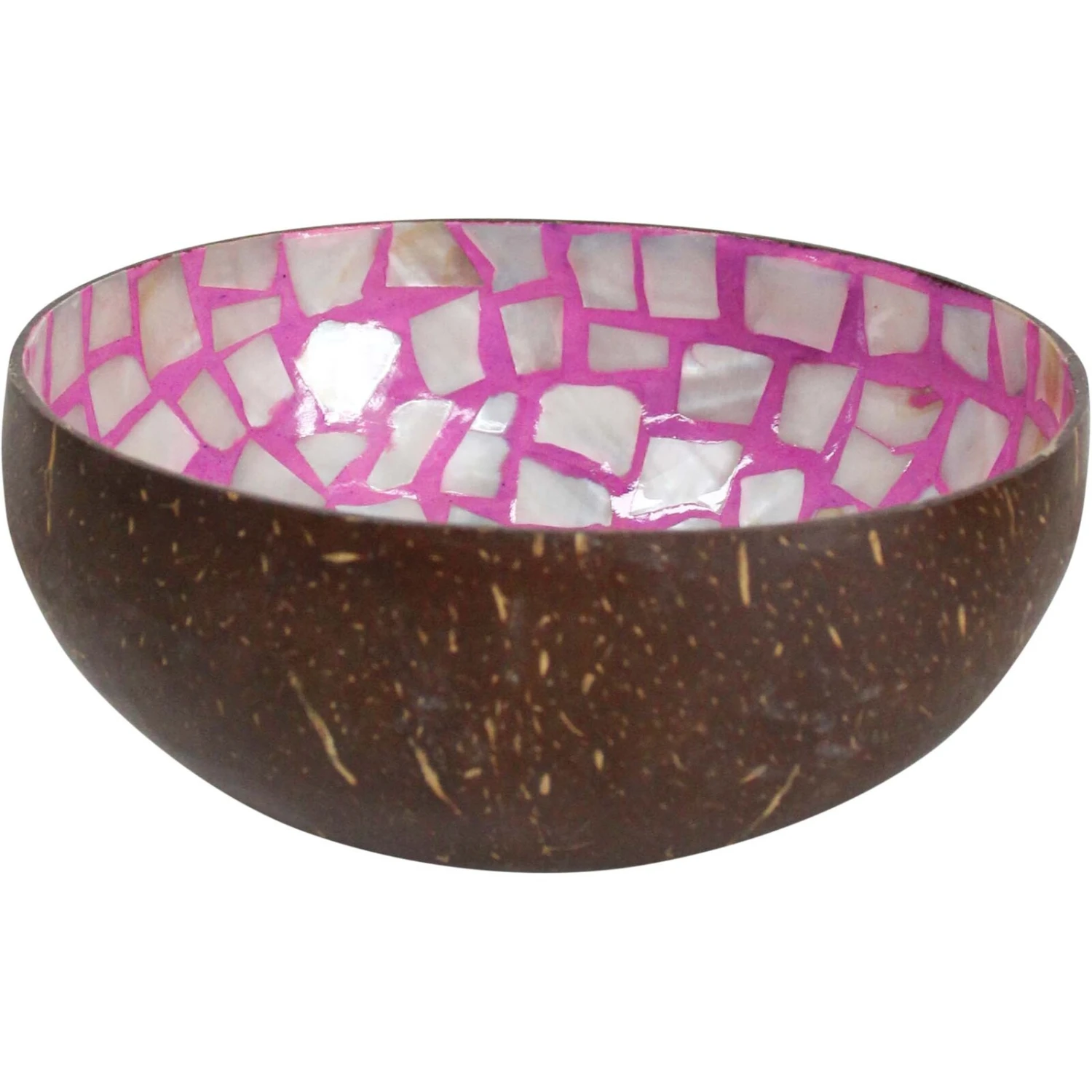 Elevate your home decor with the Coco Bowl Musk, a stunning accessory that merges natural elegance with a touch of vibrant flair. Measuring approximately 13x13x6cm, this bowl showcases a beautiful coconut shell exterior complemented by an intricate Mother of Pearl (MOP) inlay in a lively pink hue. This eco-chic piece is an eye-catching addition to any collection, promising to attract customers seeking unique, sustainable home accents that blend organic beauty with contemporary design.