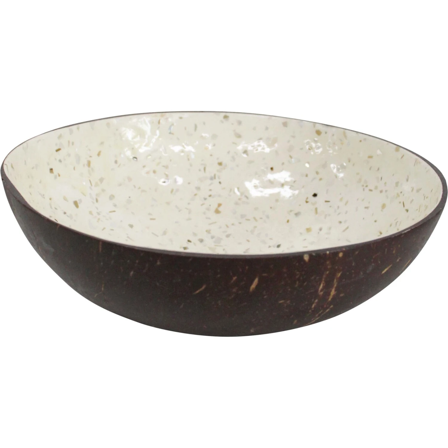 Bring an eco-chic touch to your kitchenware collection with the Coco Bowl Orient Dance, an artisan-crafted piece combining sustainability with style. Measuring approximately 13x13x6cm, this bowl boasts a striking blend of natural coconut shell exterior and an iridescent Mother of Pearl (MOP) interior, creating a unique aesthetic that’s sure to captivate your customers. Stock this versatile and visually appealing bowl to offer a delightful and environmentally-friendly option for home dining and decoration.