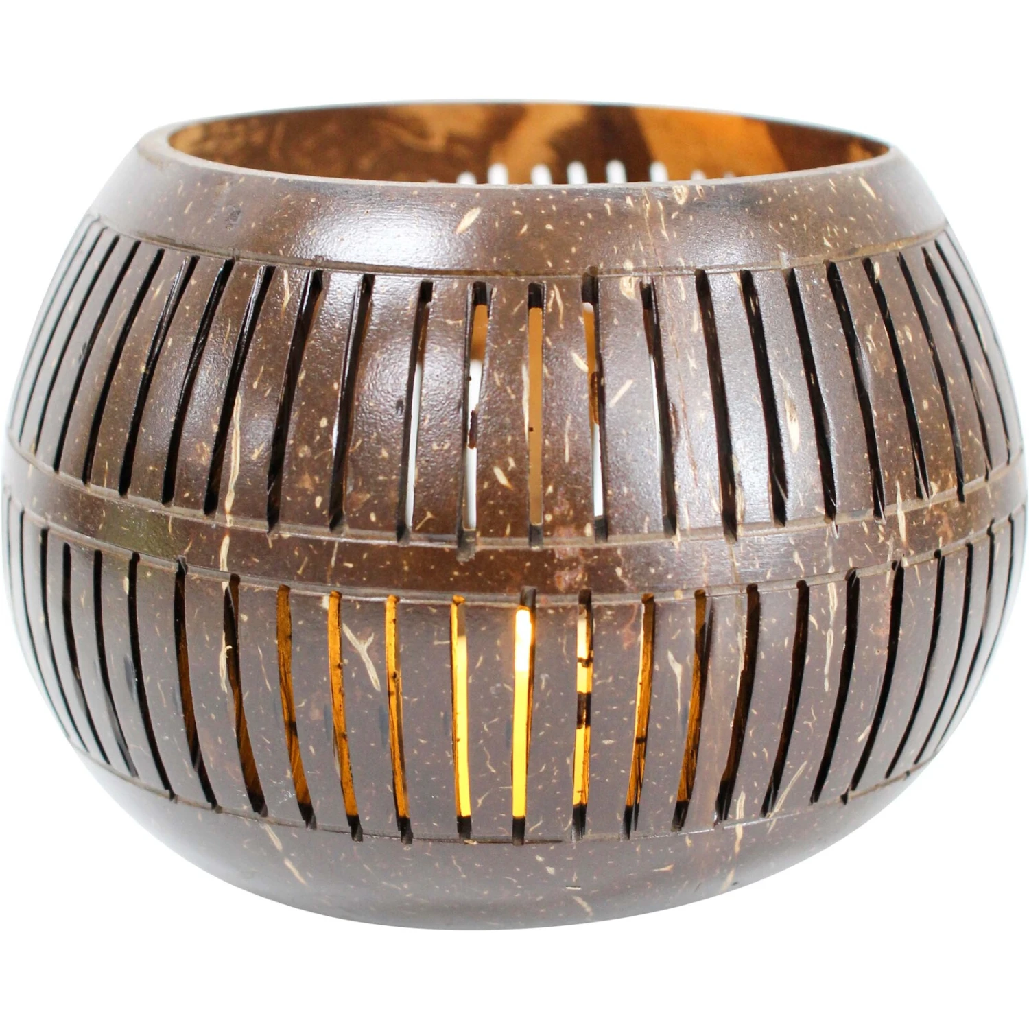Experience a tropical paradise without going anywhere with Coco Lantern Slat. Our boho-style coconut candle holder is suitable for indoor use as well as on the front porch, and in the backyard. This brilliant coconut candle holder has a finesse finish, so it does not deteriorate quickly against mechanical abrasion.