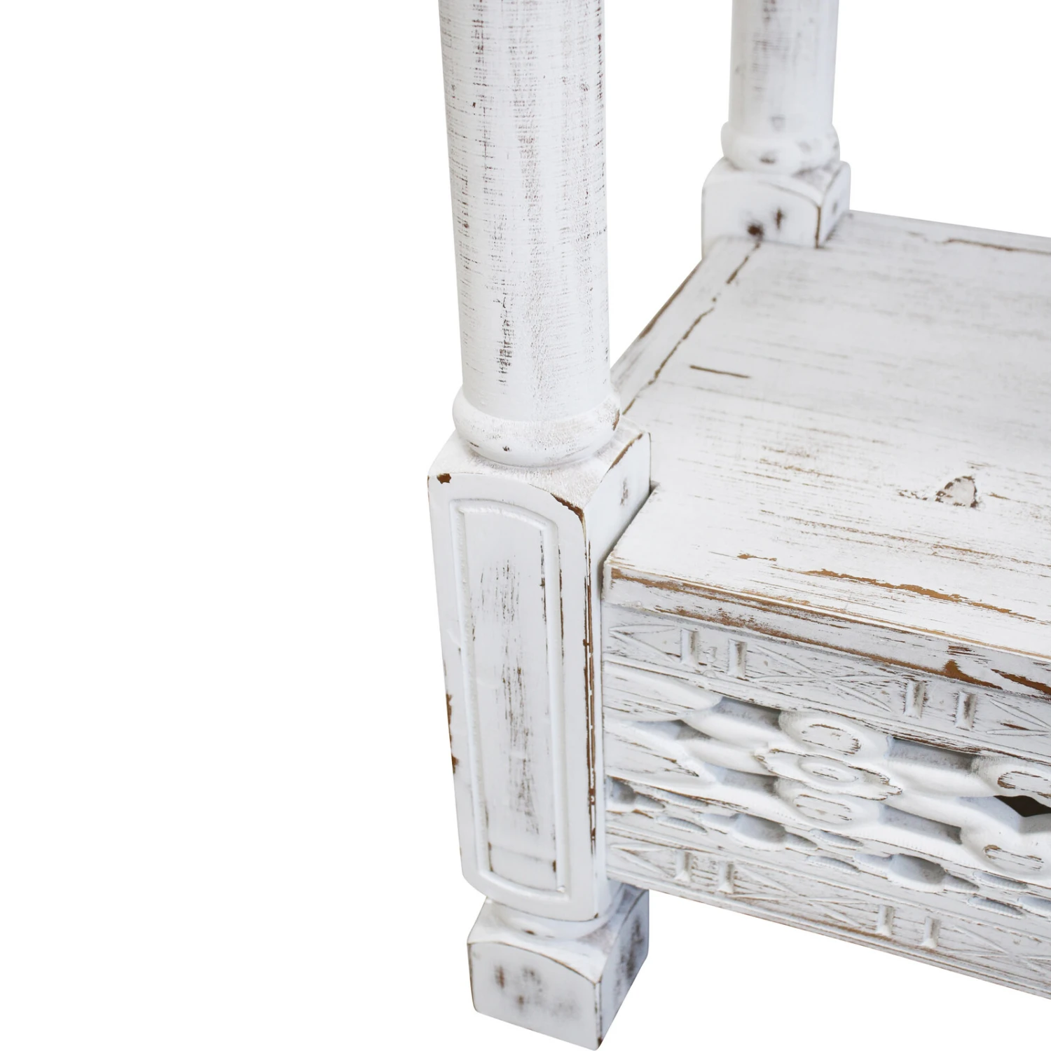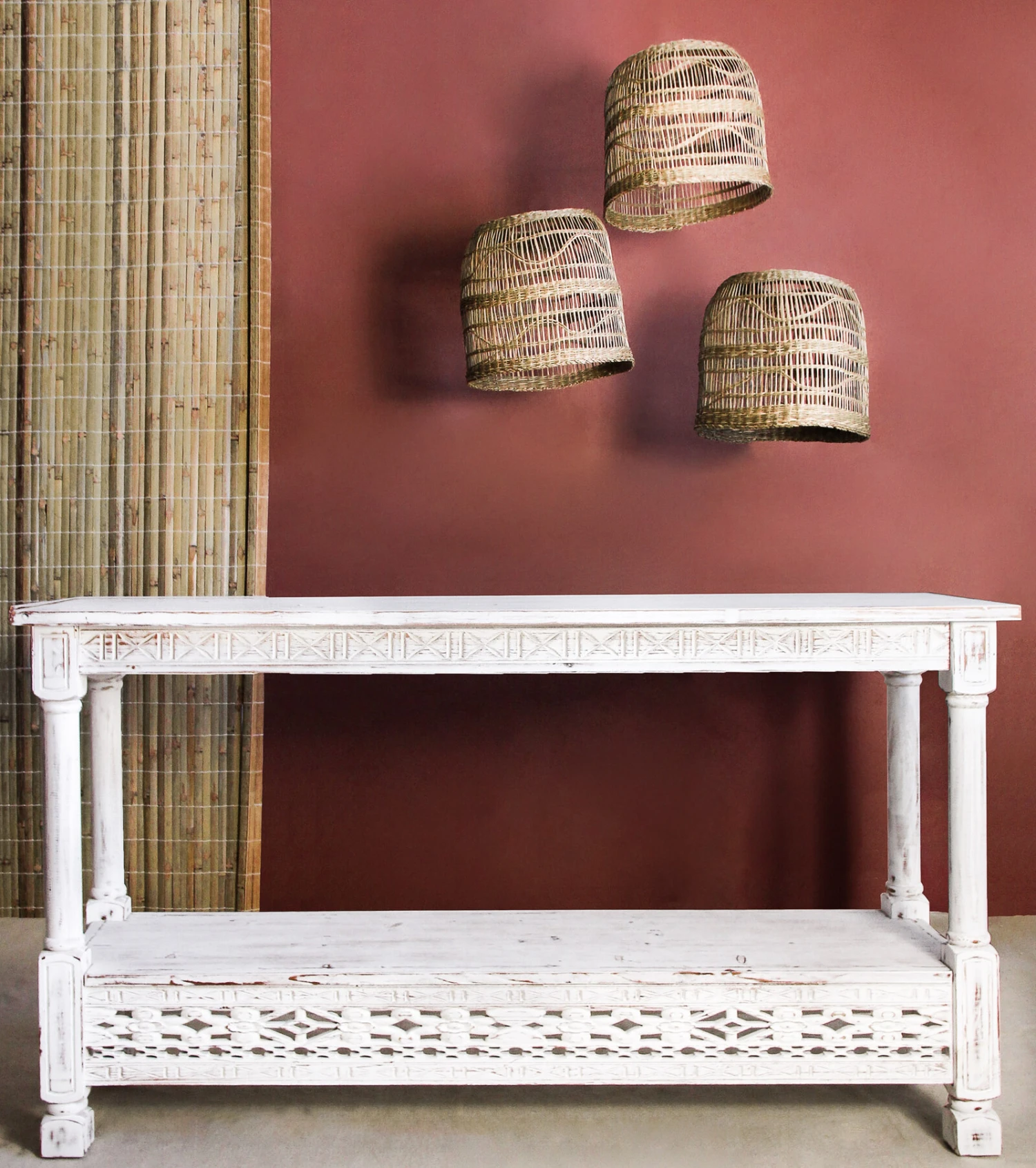 Add a touch of rustic charm to your home with the Console Noosa Rustic White, a piece that artfully combines aesthetic appeal with functional design. Crafted from durable fir and MDF, this console table features dimensions of 136x40x75.5 cm, offering ample space for display and storage with a distressed white finish that easily complements various interior styles. Retailers looking for an attractive item that merges classic style with modern sensibilities will find this piece a customer favourite, boosting both interest and sales.
