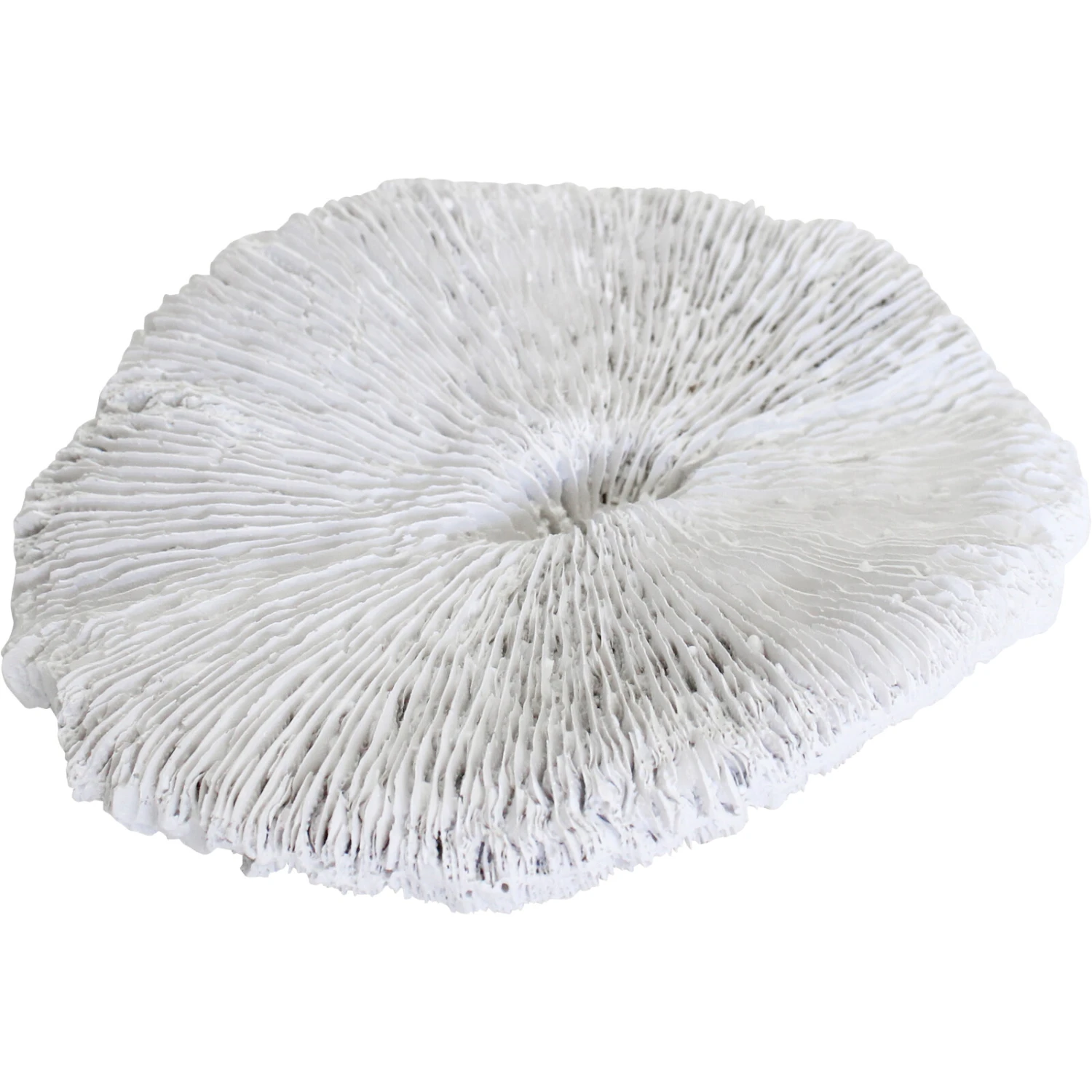 Add a touch of natural elegance to your store with our Coral Mushroom decorative piece, an exquisite replica that captures the intricate beauty of oceanic life. This realistic sculpture measures 17.5x14x4cm, crafted from high-quality polyresin, a durable material that ensures longevity and ease of maintenance. Retailers can entice customers with this striking, monochrome accent which makes for an eye-catching display in homes or offices, and its unique design is sure to spark conversations and enhance any decorative arrangement.