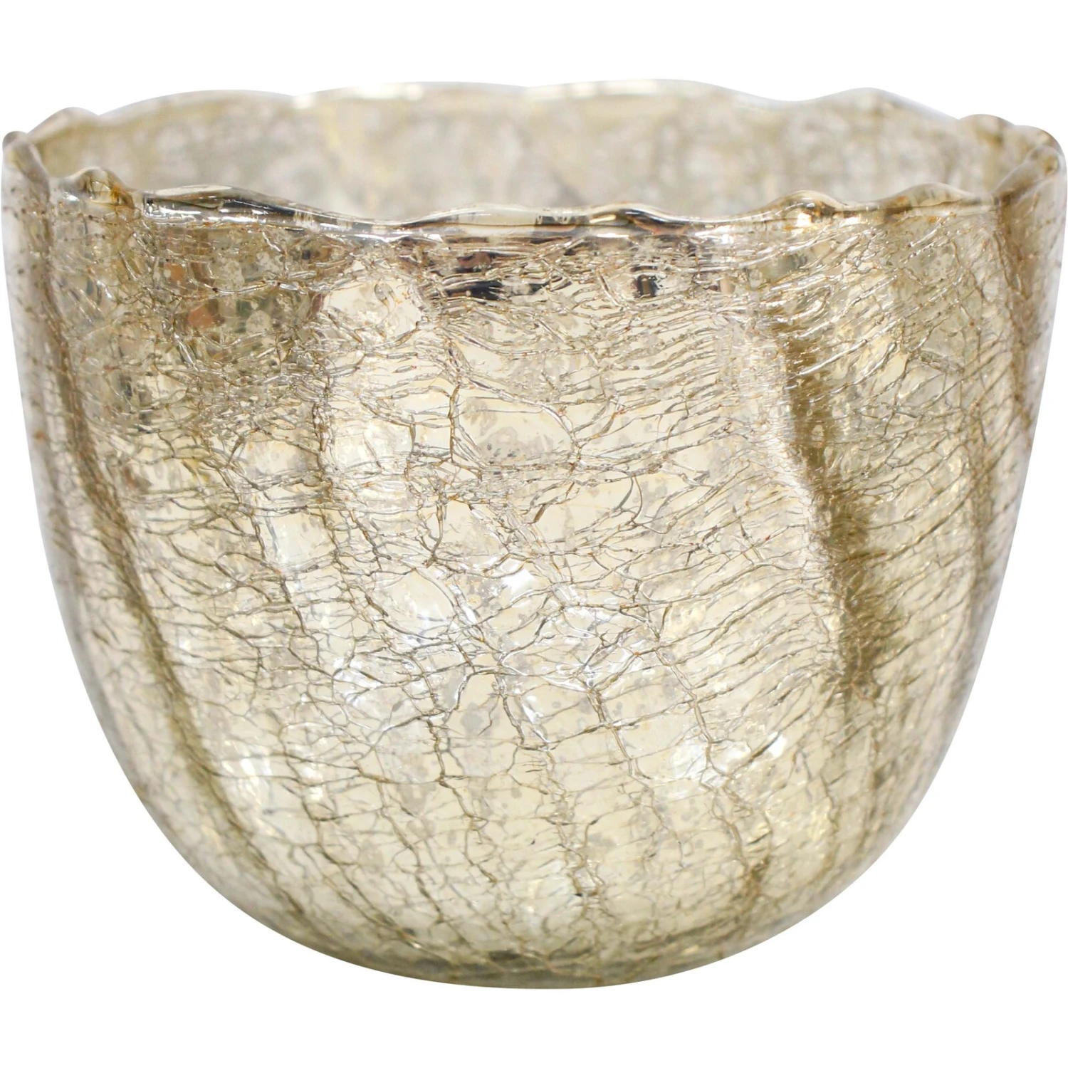 This captivating votive holder is a visually stunning piece designed to prevent any candle-induced mess while adding an elegant touch to one’s space. The nougat-toned body adorned with delicate crackled glass patterns reminiscent of a frozen spider’s web evokes subtle beauty and charm.