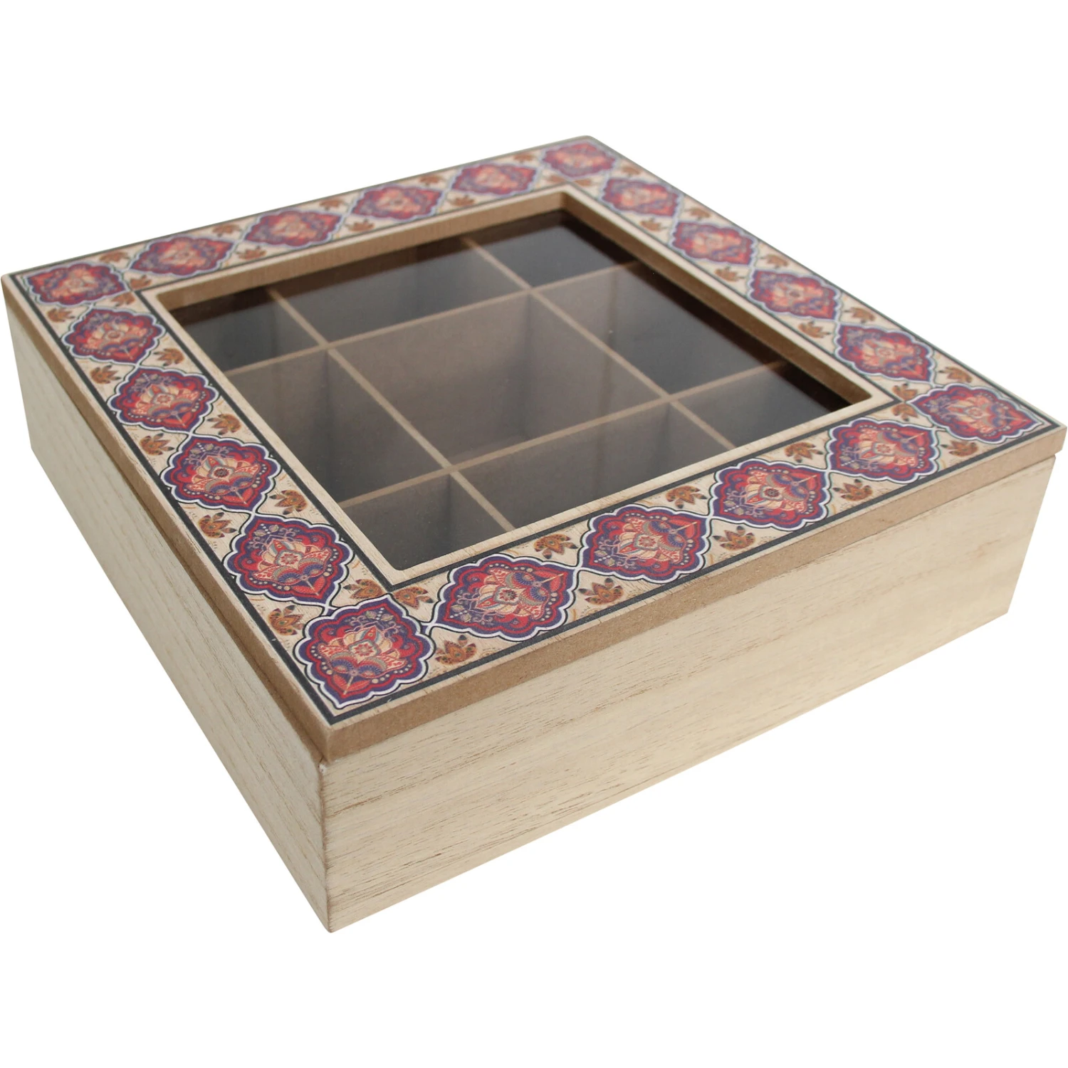 The Display Box Sari is a beautiful and tastefully ornamented square shaped box which would be perfect for use in versatile number of ways. It is practically suitable for use as a box which can be used in displaying various items such as herbs, spices, and several other things. Apart from this, it would also be perfect as a tea box within which several tea flavours can be kept safely with the flavour and aroma intact.