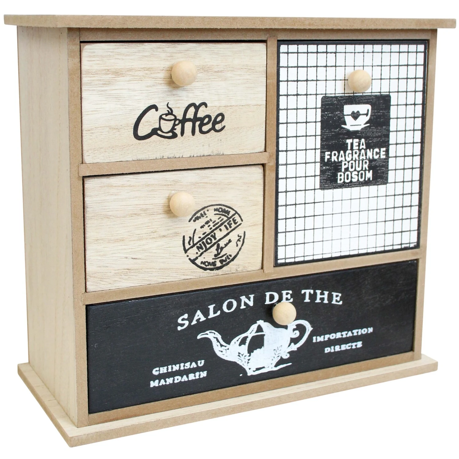 The drawers multi Caffe is a smart an chic way to keep your tea or coffee counter looking well organized and above all, help you your favourite beverage made without too much fuss. Crafted from MDF a few drawers need to be opened and you would get all the condiments and ingredients needed for your favourite coffee or tea. A fine well balanced organizer sure to add to the charm of that space as well.