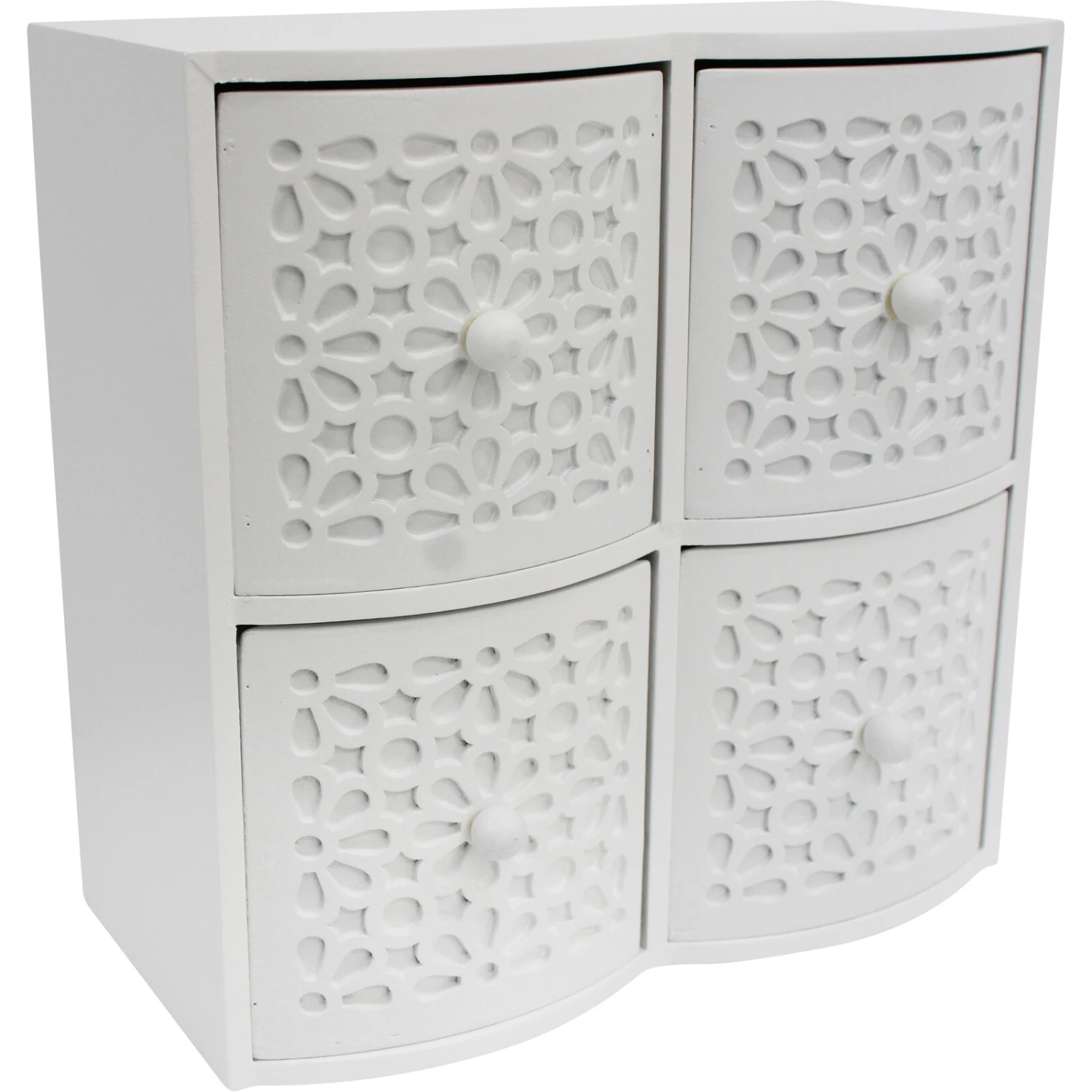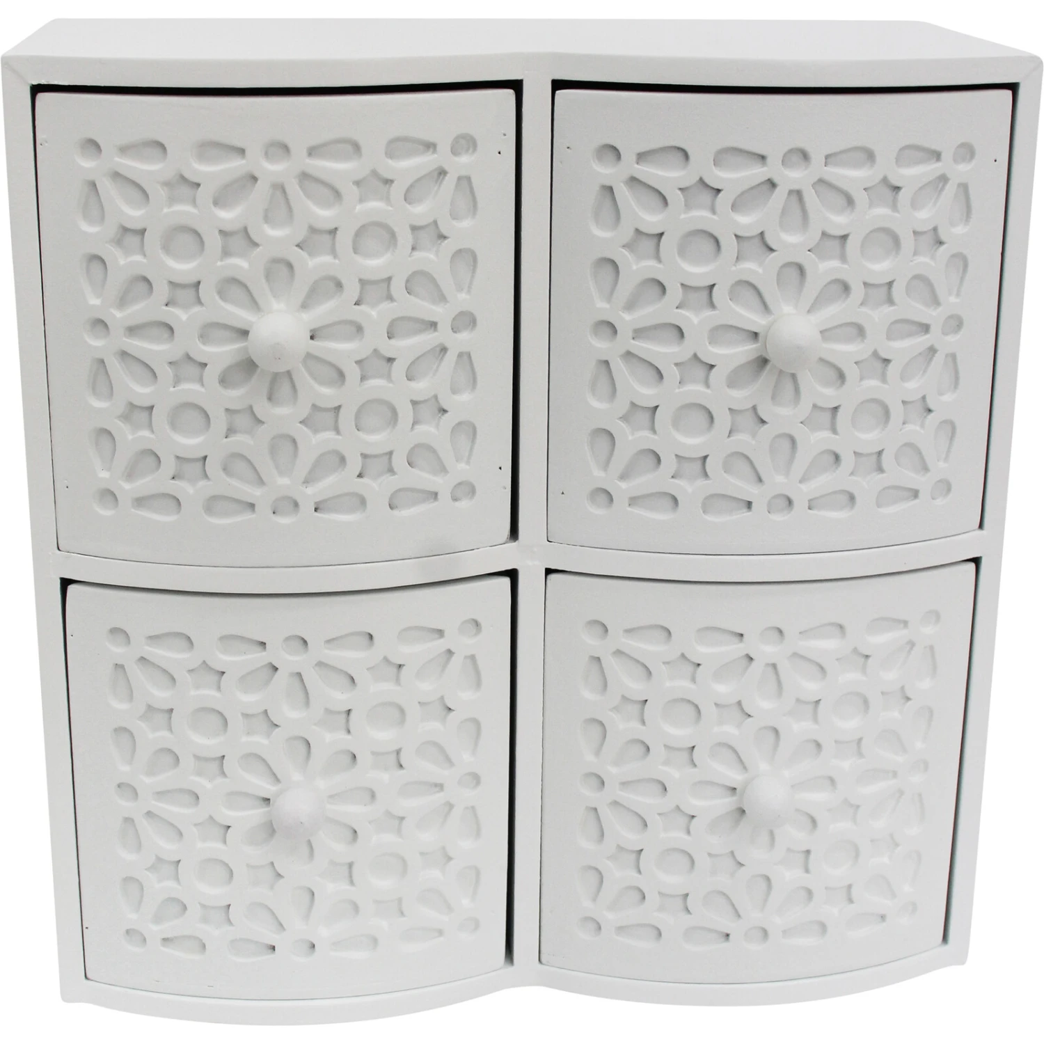 The Drawers Ornate 4 White is just what your customers have been looking for as it is a set of drawers that is portable in size hence, not consuming much space. Yet, despite its portability and space optimization, it offers your customers as many as four spacious cabinets/drawers within which they can safely keep and store precious possessions such as jewelleries, trinkets, and so on.
