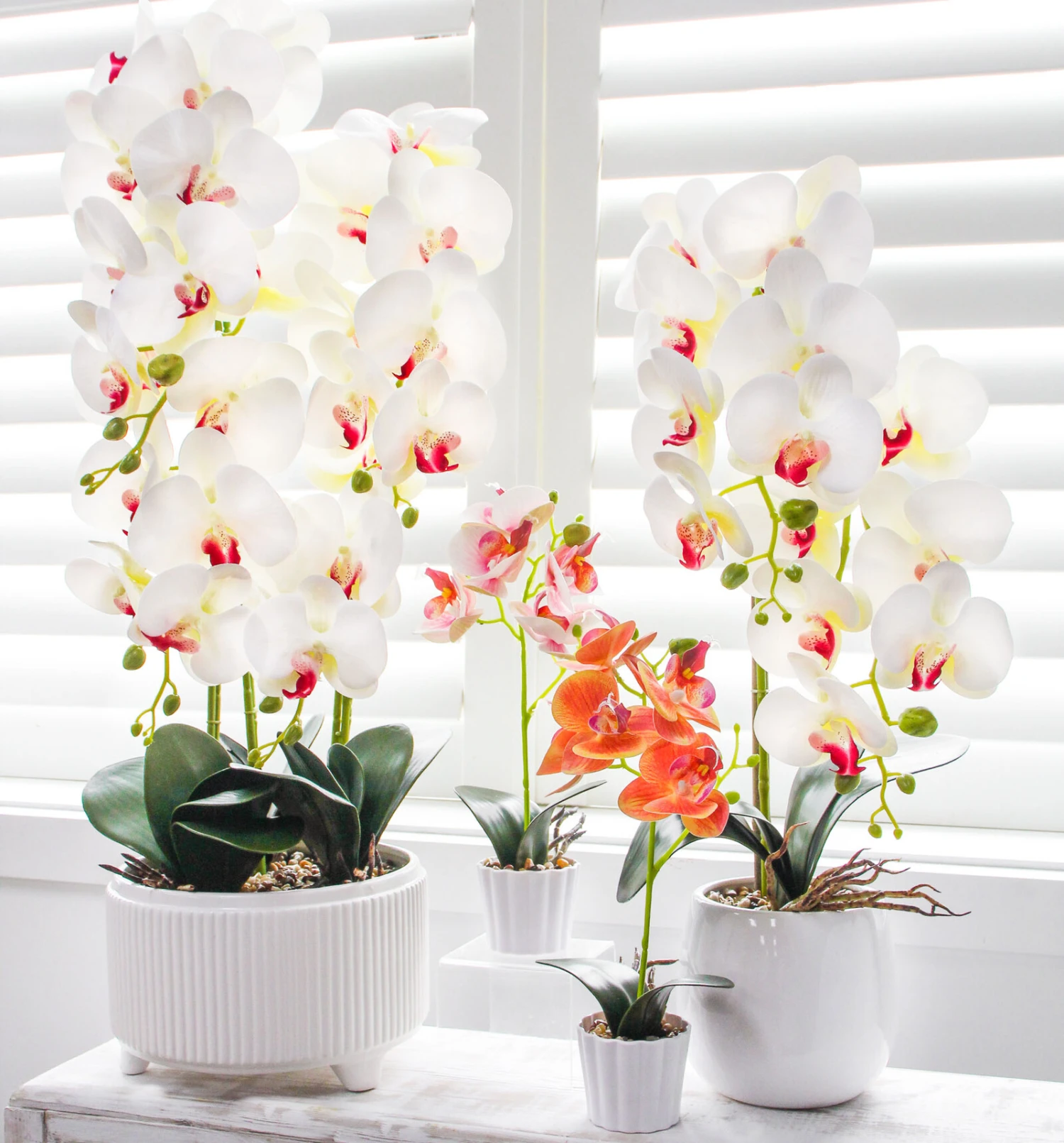 Add a touch of elegance to your home with this stunning Faux Orchid XL in White from LaVida. This life-like orchid features delicate white petals and a realistic green stem, making it the perfect centerpiece for any room. The extra-large size of the orchid makes it a statement piece that will catch the eye of all your guests. Made from high-quality materials, this faux orchid is easy to maintain and will last for years to come. No need to worry about watering or sunlight, simply place it in your desired spot and enjoy its beauty. With its timeless design, this faux orchid is a must-have for any home decor enthusiast.
