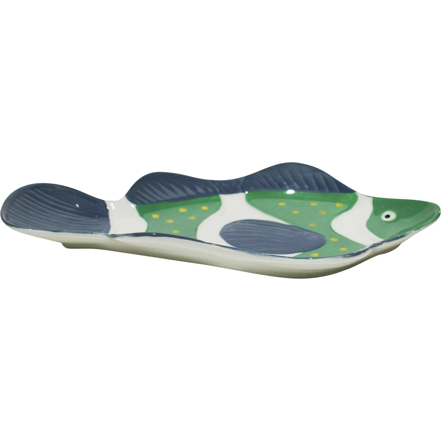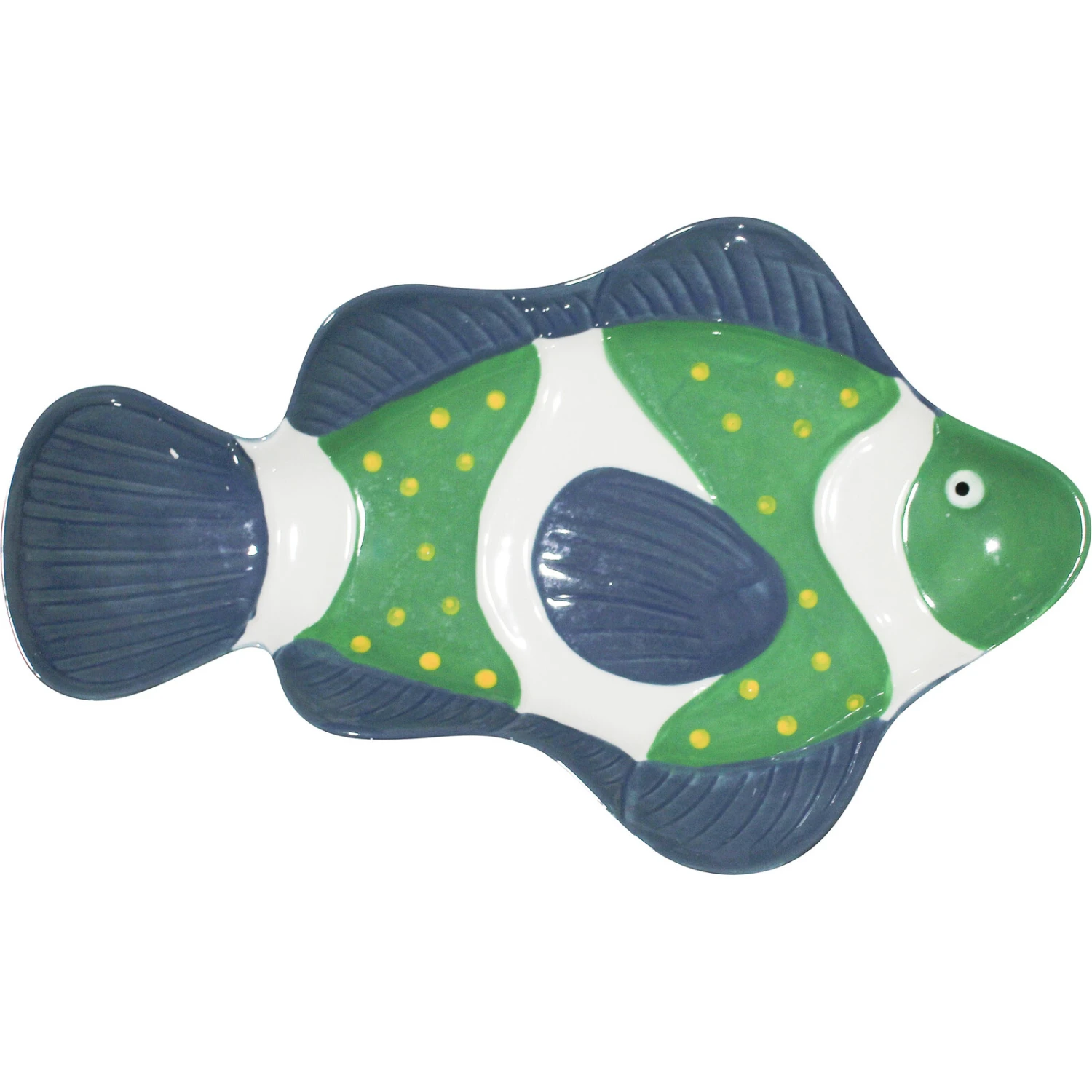 Homeowners can add a bit of sophistication to their dinner table with Fish Plate Oscar! With this lovely plate, one can add a splash of colour and personality to their dinner table. This ceramic plate is hand-crafted with an exquisite replica of an Oscar fish. It features a dazzling blue and green hue with a dotted yellow pattern.