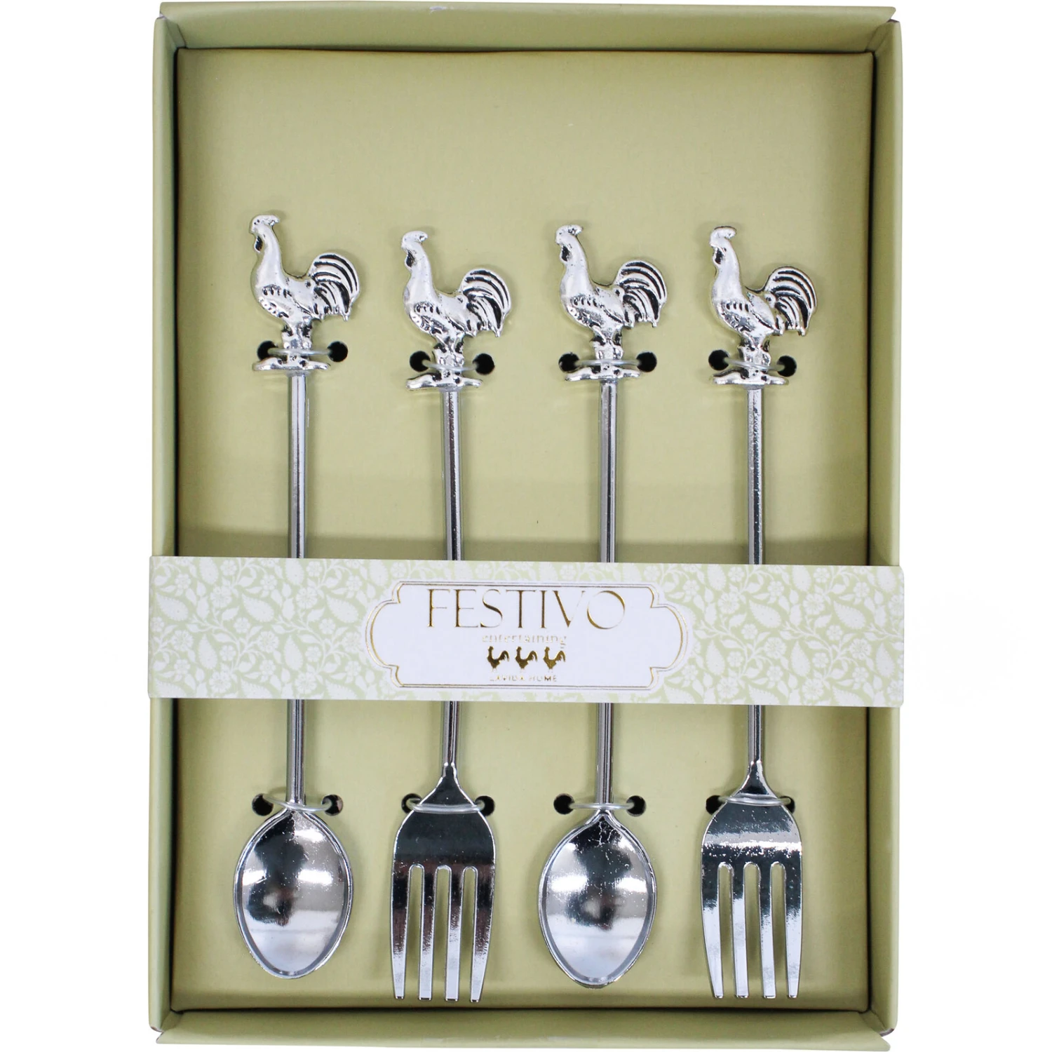 Elevate your table setting with the charming Fork/Spoon Set Rooster, an ideal addition to any kitchen collection that appreciates a touch of countryside flair. This delightful set is meticulously crafted from lustrous metal’, showcasing a timeless silver hue, and measures a convenient 14.5X10.5X2.5CM. Retailers will find this whimsical set a surefire hit among customers who are drawn to combining functional dining with decorative elegance.