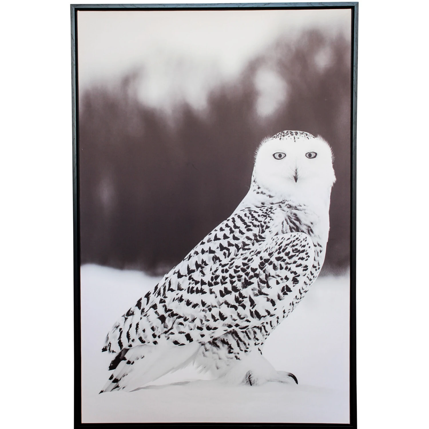 Looking to effortlessly introduce neutral tones, and heartwarming illustrations into your walls. Framed Canvas Snowy Owl 1 characterizes a filled-tree forest that is slightly obscured by snow and fog overhead. The monochromatic colour palette adds interest to the owl, while the blurred out backdrop adds to the soft and calming feel of the canvas art. This is a dedicated work of art that shows off one’s personality and make a breathtaking focal point in a gallery wall.