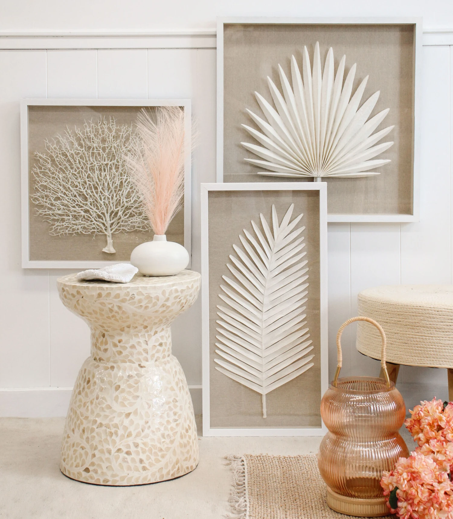 Our Framed Fan Palm White is a masterpiece for creating an eye-catching accent wall that’s delightfully light and stylishly tropical. Clients looking to add a touch of serenity and peace of mind cannot go wrong with this exquisite piece.