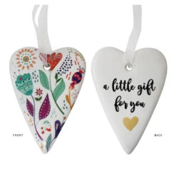 The Gift Heart Folk is one of the inexpensive ornaments which nonetheless infuses and immensely heighten the decorative atmosphere of spatial décor. Portable and light, it is cleverly hand crafted through the use of pure quality ceramic material in a heart shaped design which measures 6 centimetres in its length and 8 centimetres in its height. Each of these floral themed ceramic hearts comes with a ribbon for easy hanging.