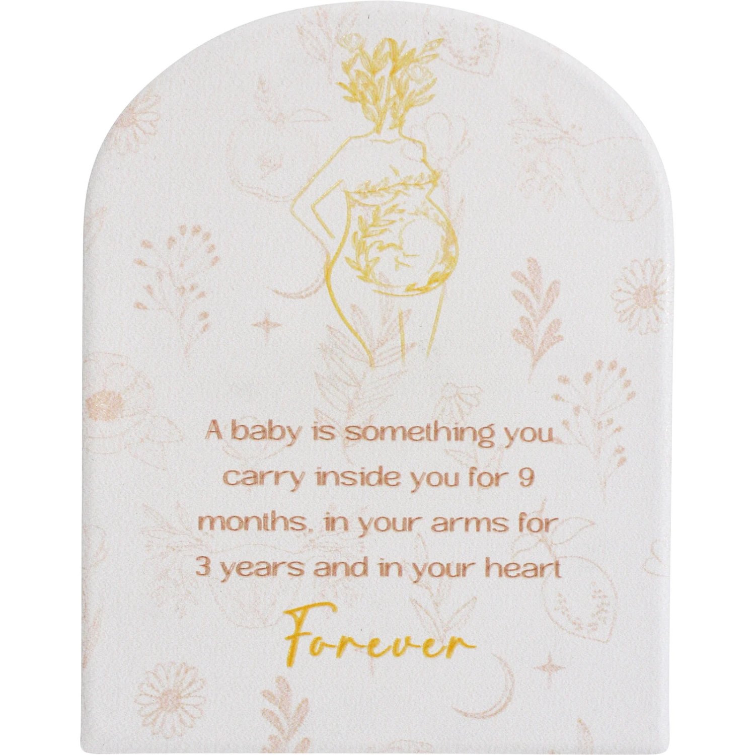 Gift Plaque Beautiful Beginnings is a heartfelt and sentimental keepsake that perfectly captures the essence of the phrase ‘a baby is something you carry inside you for 9 months. In your arms for 3 years and in your heart forever. This beautifully crafted product is designed to commemorate the special bond between a parent and their child, serving as a constant reminder of the love and joy that a baby brings into one’s life.