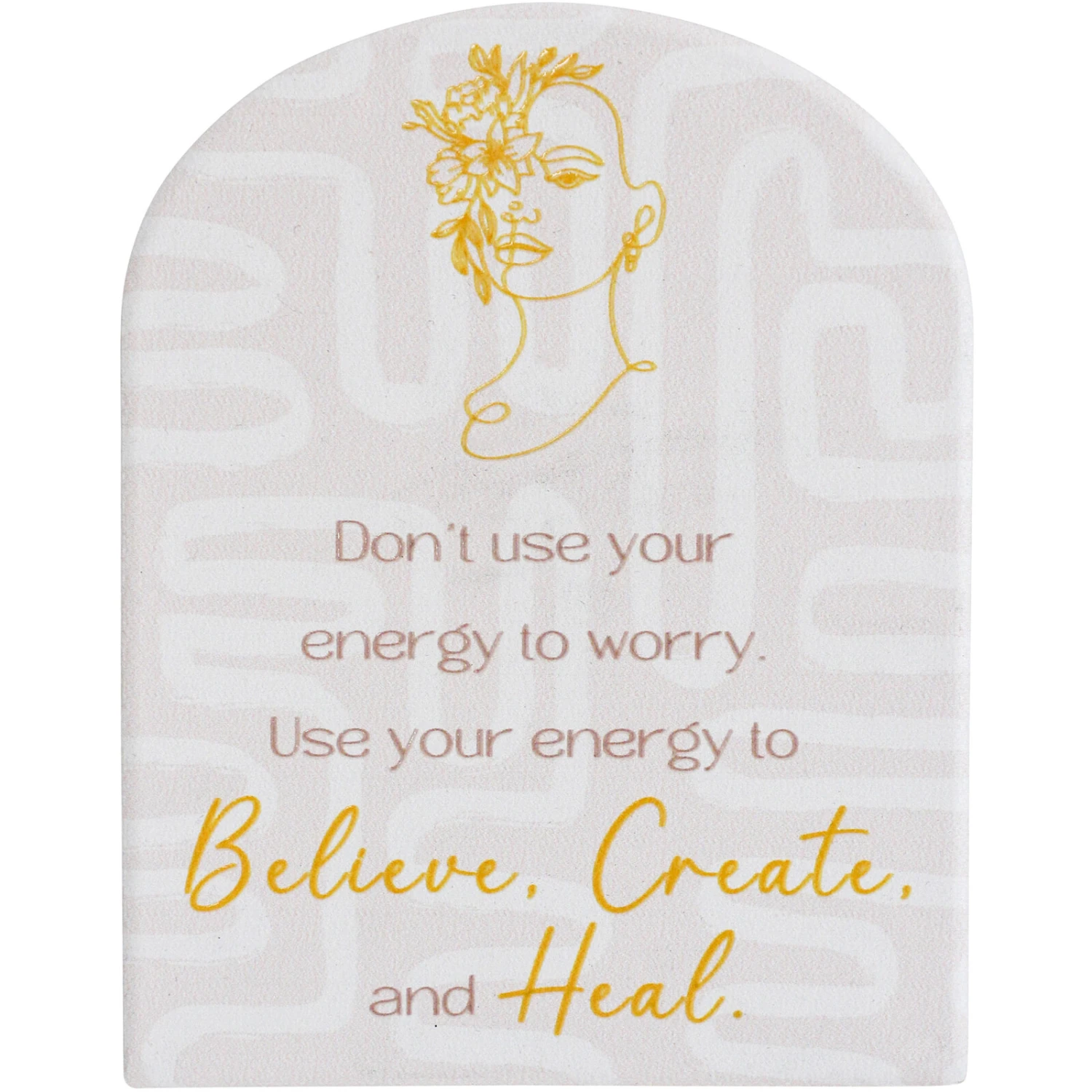 Showcasing a beautiful and inspiring piece that will uplift and motivate any woman. This product features a captivating image with the powerful message, ‘Don’t use your energy to worry. Use your energy to believe, create, and heal’. This piece is designed to be a constant reminder to let go of worries and focus on the positive aspects of life.