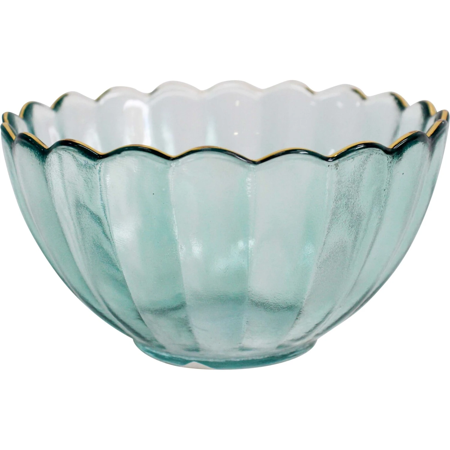 Experience the allure of the Glass/Bowl Mist/Gold, featuring a geometrically shaped cylindrical body in a soothing pastel tone, adorned with a luxurious gold rim. This glass bowl not only serves practical purposes but also serves as a stunning vessel for displaying fresh flower arrangements.