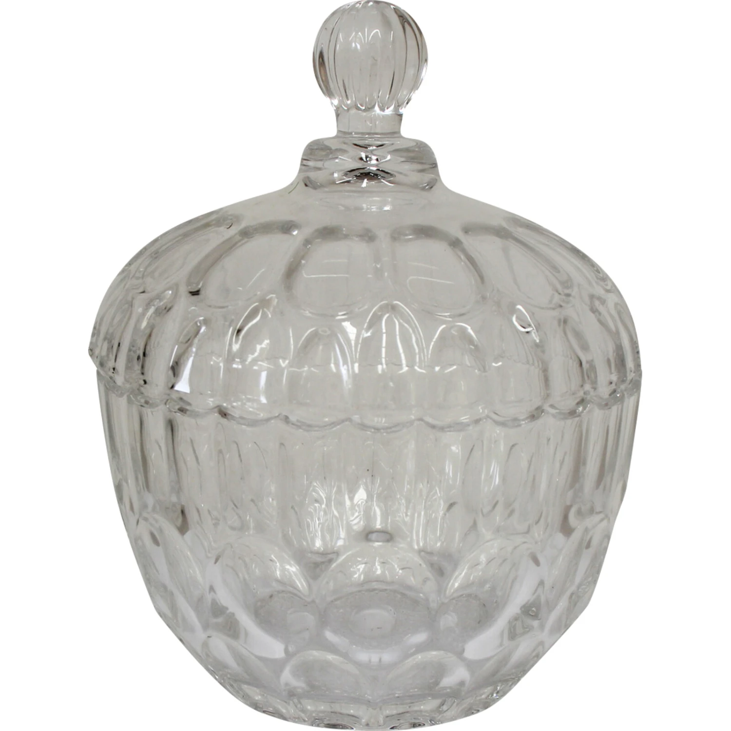 Measuring 17 centimetres in height, the Glass Jar Pretty is indeed pretty tall decorative glassware that adds sparkle and shine to every décor and living space setting. With deep set imprinted patterns and lucid clarity, it is definitely the décor glassware your clientele wouldn’t want to miss out on. With its intricate, well etched patterns, it looks nothing short of regal.