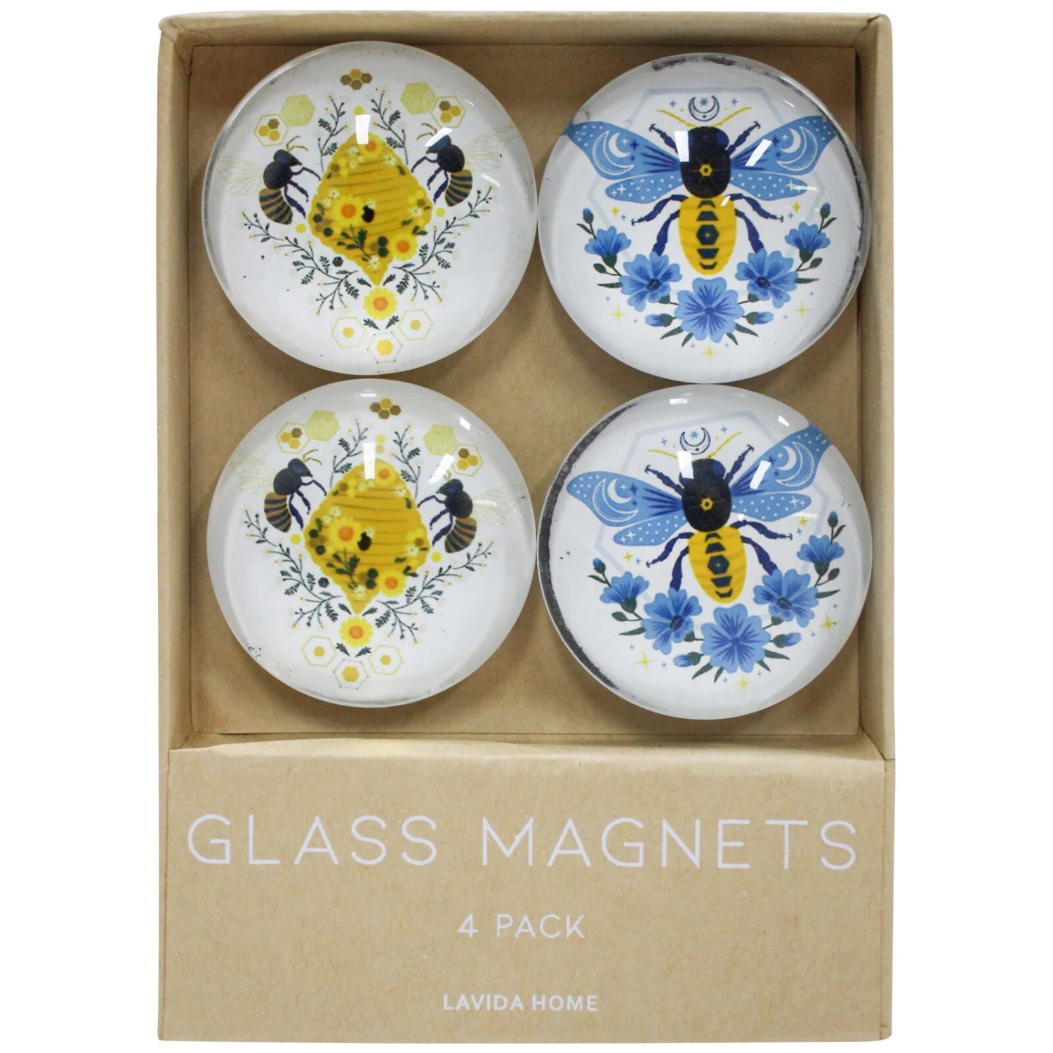 Add a touch of nature-inspired charm to any magnetic surface with the Glass Lrg Magnets S/4 Bee Hive set. These delightful glass magnets, measuring 9.5×13.5×1.5cm, showcase vibrant illustrations of bees and hives amid floral patterns, providing an eye-catching mix of blue and yellow hues. Perfect for gift shops and home decor retailers, these artisanal magnets can appeal to customers looking for functional yet decorative items to spruce up their space.