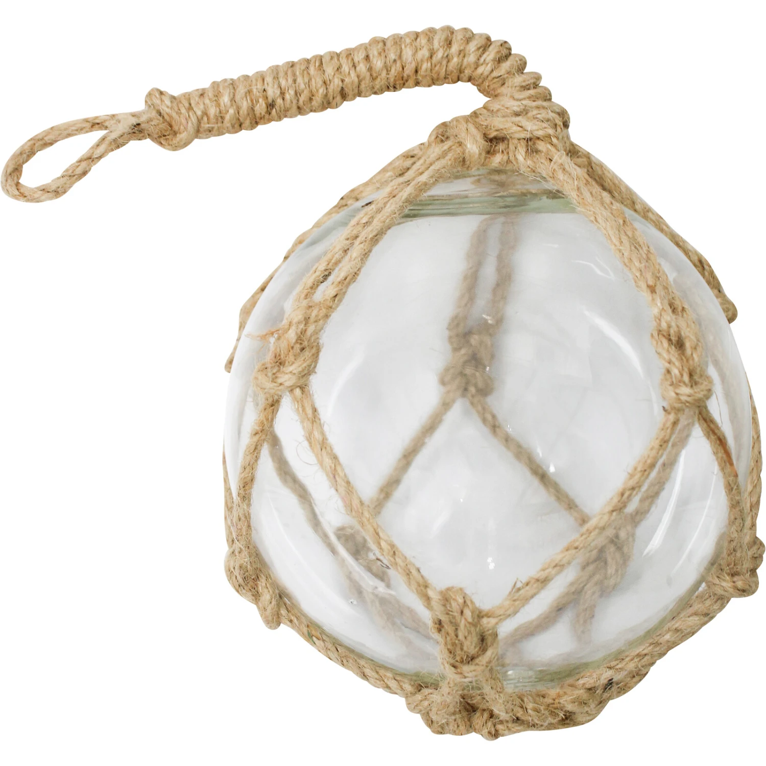 Elevate your home or store decor with the nautically inspired Glass Rope Ball Med Clear, a captivating blend of transparency and texture. This decorative accent piece measures a compact 16x16x16 cm, featuring a clear glass ball ensconced in a sturdy jute rope net with an additional loop for easy display. Its blend of rustic charm and simple elegance is sure to attract customers seeking a coastal, artisanal touch to their spaces.