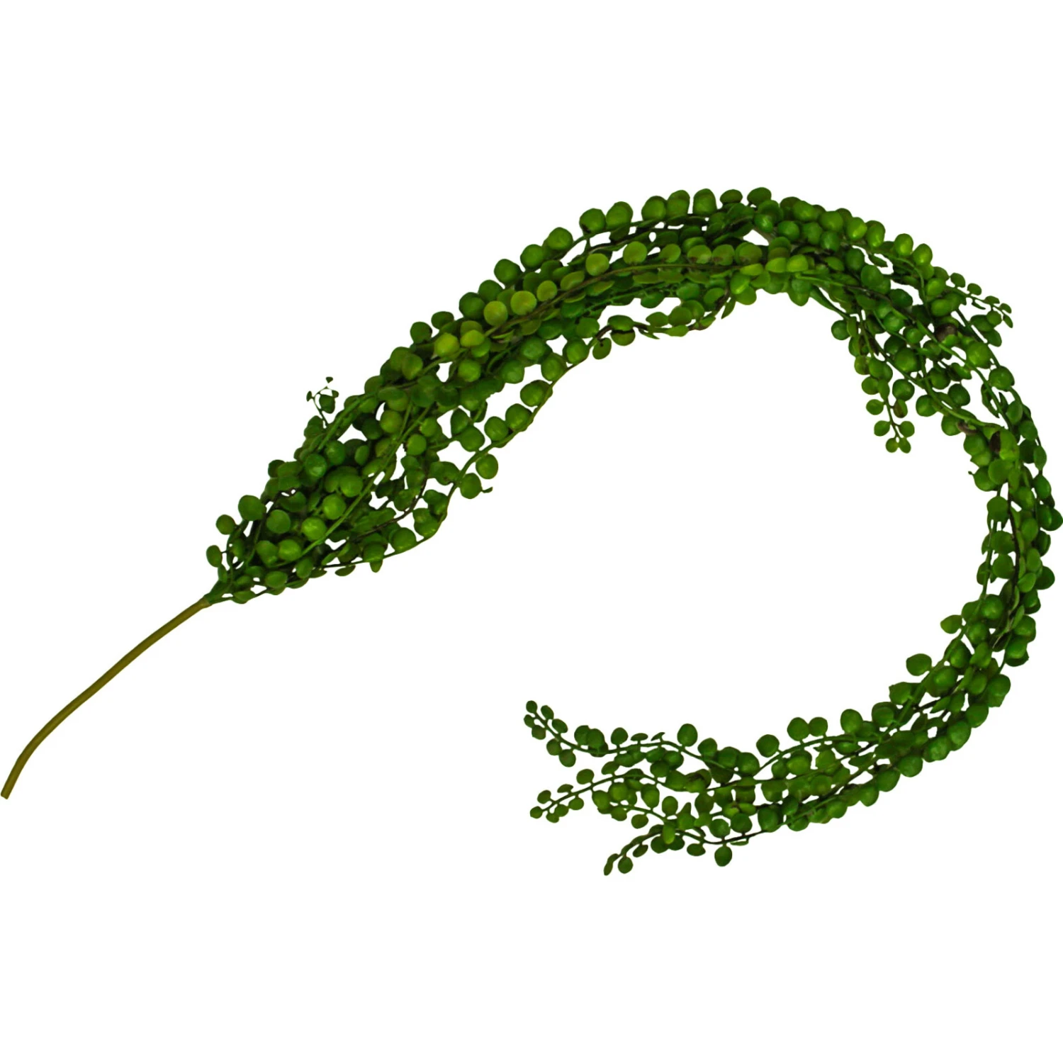 Create an aura of vibrant greenery in any space with the Hanging Beads Flat, measuring an elegant 90x7x4 cm. This luscious strand of faux foliage, rendered in a lush green hue, is crafted from high-quality plastic with a sturdy metal core for easy shaping and durability. Perfect for retailers looking to infuse their offerings with a touch of nature, this ornamental piece is sure to catch the eye of customers looking to enhance their home or office with a maintenance-free botanical accent.