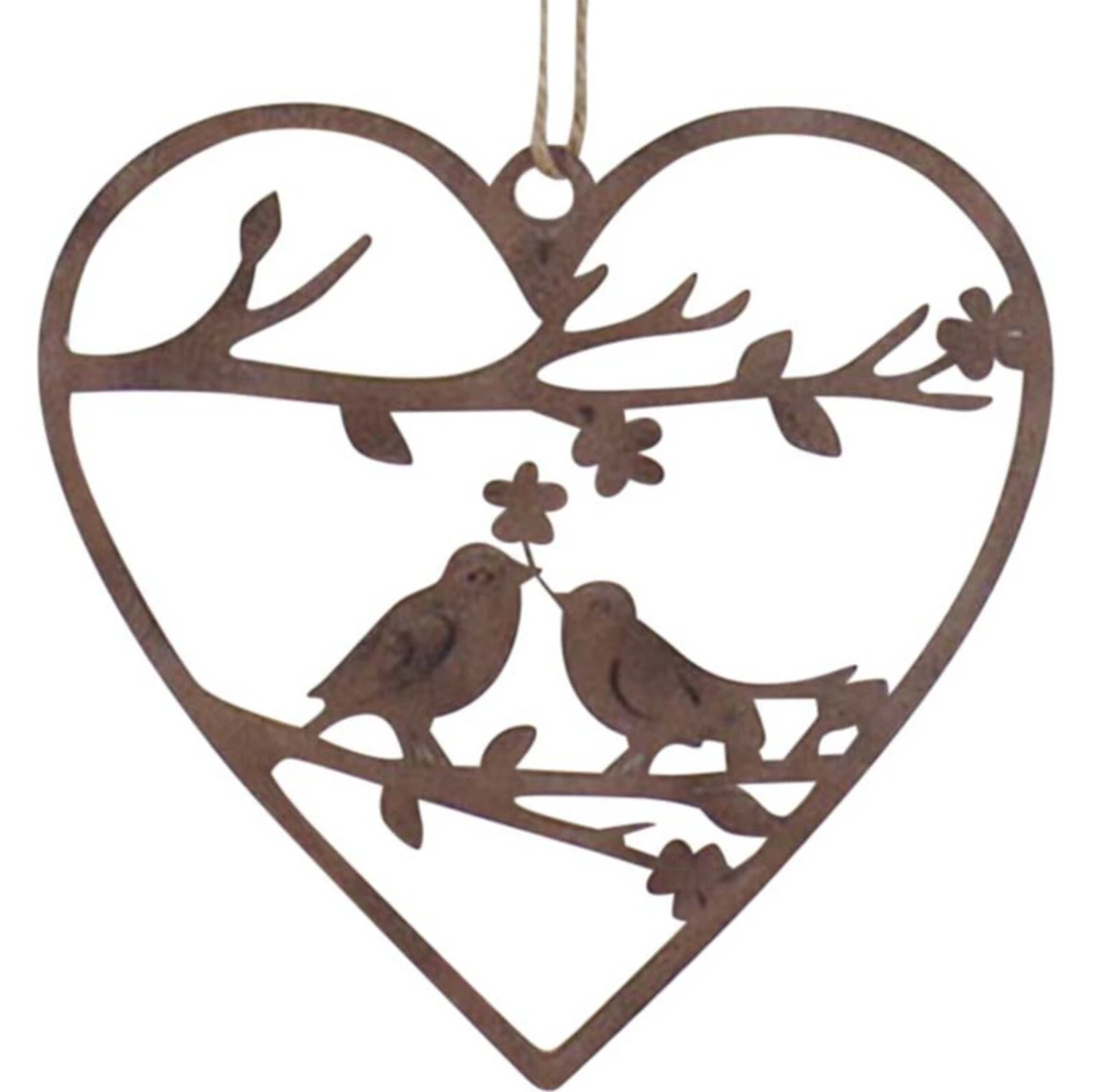 Hanging Heart 2 Birds Rust never goes out of style capable of truly transform any space. This galvanized ornament is timeless. It does not have to replace it for a long time. This accented shape of a heart has a rustic accent and ready to hang string.