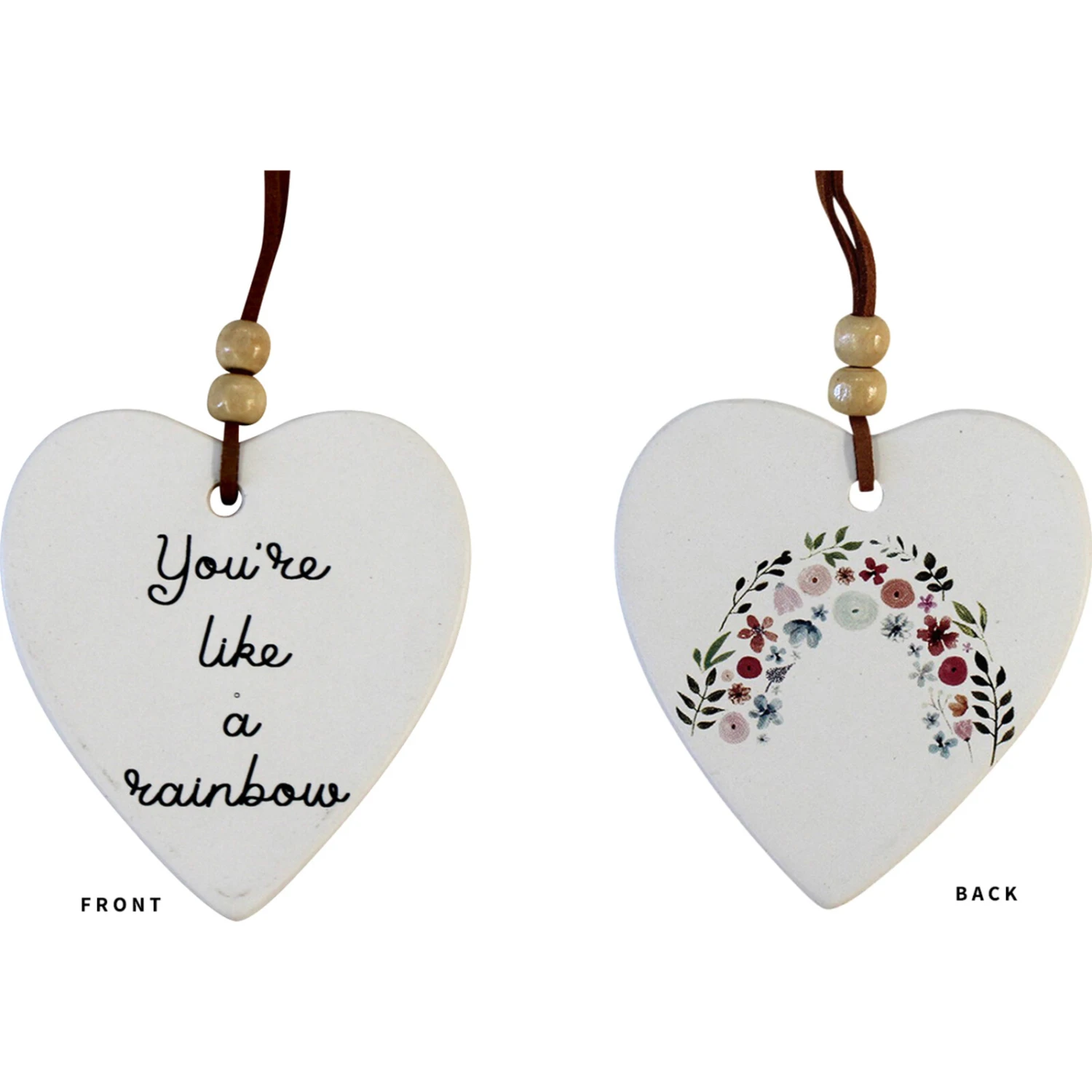 Nothing says spring like Hanging Heart Rainbow Flowers. This heart-shaped ceramic has neutral tones and an assortment of flowers. Its striking flowery ambience affirms new life and the coming of spring. This heart is the perfect accessory as a personalized gift for someone special. Its pastel shades will have a lasting impression as well as sprinkling beauty all over the place.